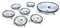 Elegante servizio da macedonia in vetro di Murano, Italy, 20th century Composto da coppa centrale e 6 coppette, cesellato in azzurro con bordo in argento