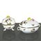 Herend Hungary (Herend 1826) - Coppia di portacioccolattini in porcellana Herend serie Rothschild, presa a guisa di fiore H cm 11x8, h cm 10x18 Dal 1860 sicuramente uno dei più famosi motivi di Herend il cui nome lo si deve al suo promotore il barone Rothschild. La decorazione è eseguita con uccelli appollaiati su un ramo. Quasi sempre all'albero troviamo appesa una collanina, si tratta della collana che la baronessa Rotschild credeva perduta e che venne poi ritrovata in giardino custodita da due uccellini sul ramo di un albero.