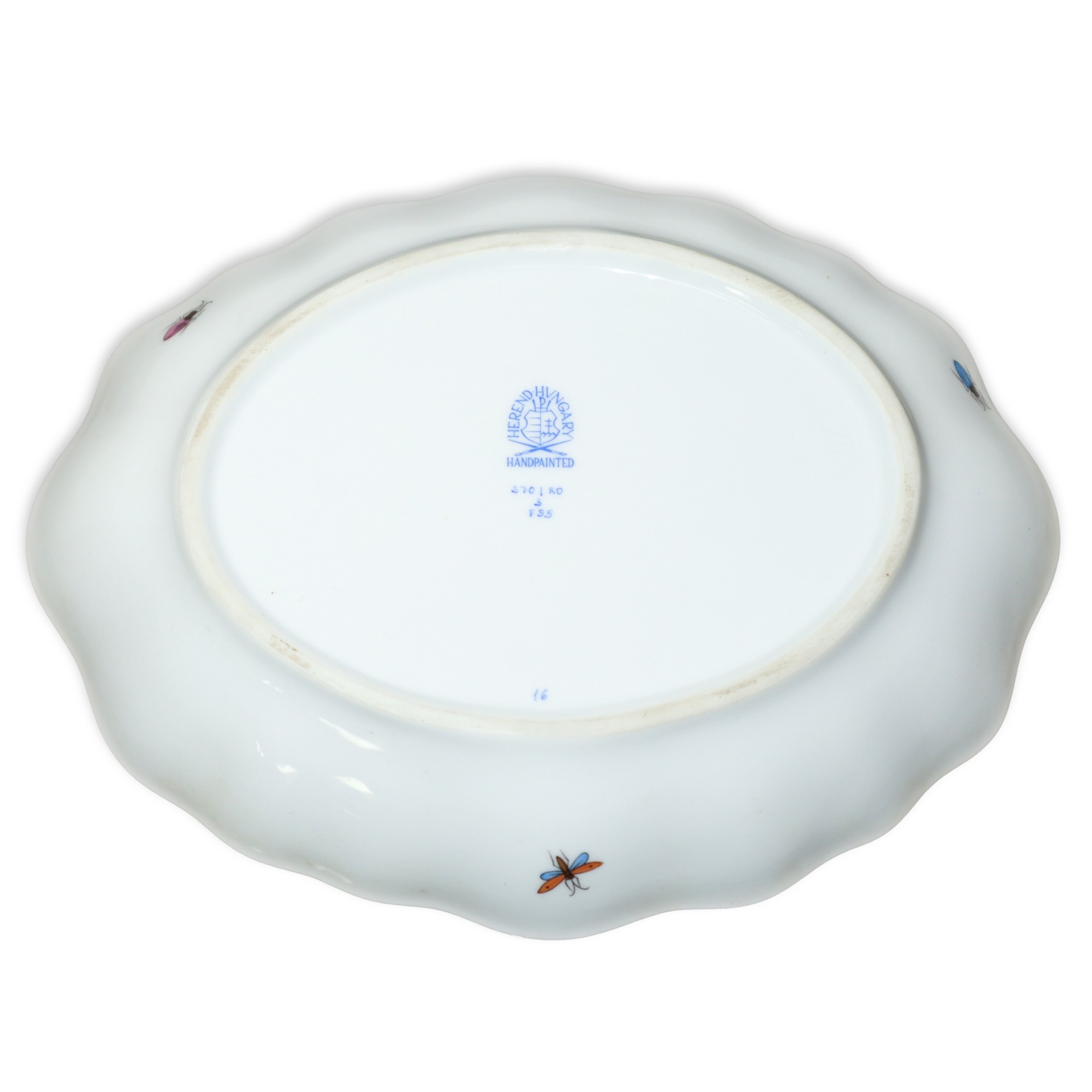 Herend Hungary (Herend 1826) - Ciotola in porcellana bianca Herend serie Rothschild cm 22x17,5 Dal 1860 sicuramente uno dei più famosi motivi di Herend il cui nome lo si deve al suo promotore il barone Rothschild. La decorazione è eseguita con uccelli appollaiati su un ramo. Quasi sempre all'albero troviamo appesa una collanina, si tratta della collana che la baronessa Rotschild credeva perduta e che venne poi ritrovata in giardino custodita da due uccellini sul ramo di un albero.