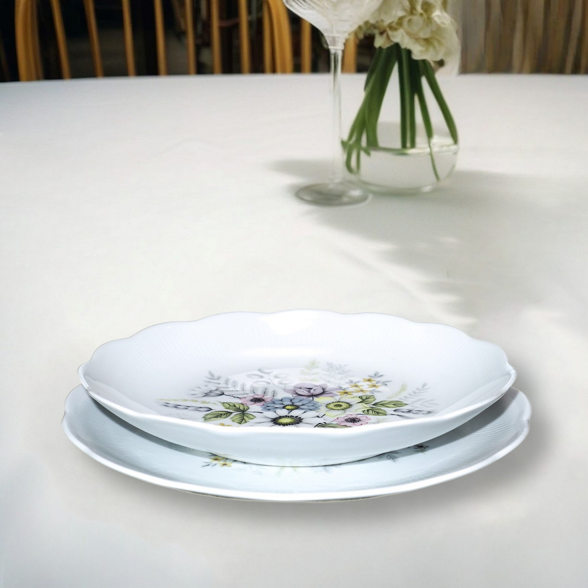 Bavaria Johann seltmann vohenstrauß - Servizio di piatti da 12 bianco con bordo smerlato e decoro floreale
