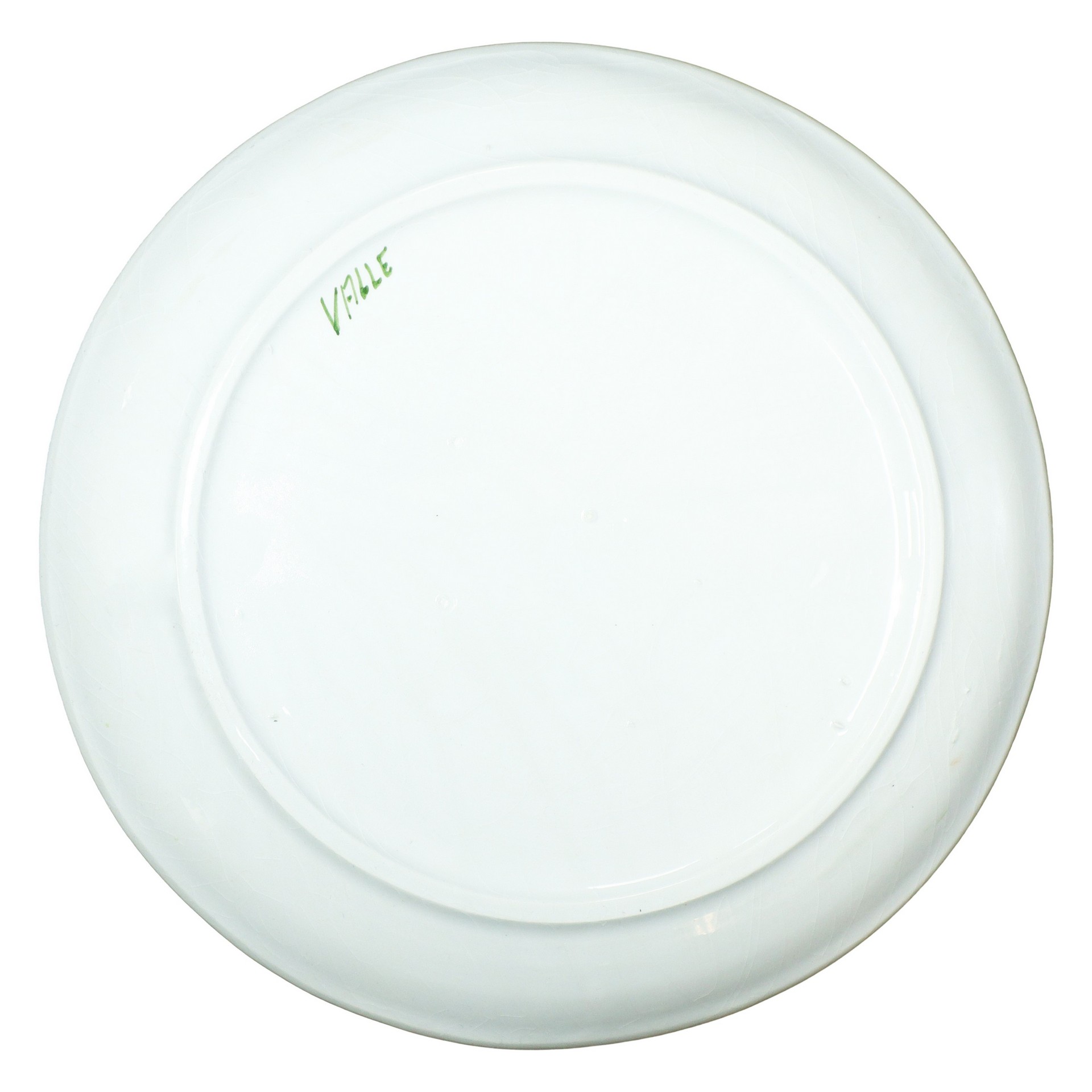 Servizio di piatti da 12, marchio ''Valle''con bordo a treccia verde e fiori di lavanda Servizio composto da: 24 piatti piani, 12 piatti fondi, 12 piatti frutta, 10 elemnti angolari smerlati, 2 elementi angolari, 1 zuppiera, 1 insalatiera, 1 piatto da portata rotondo, 2 candelieri