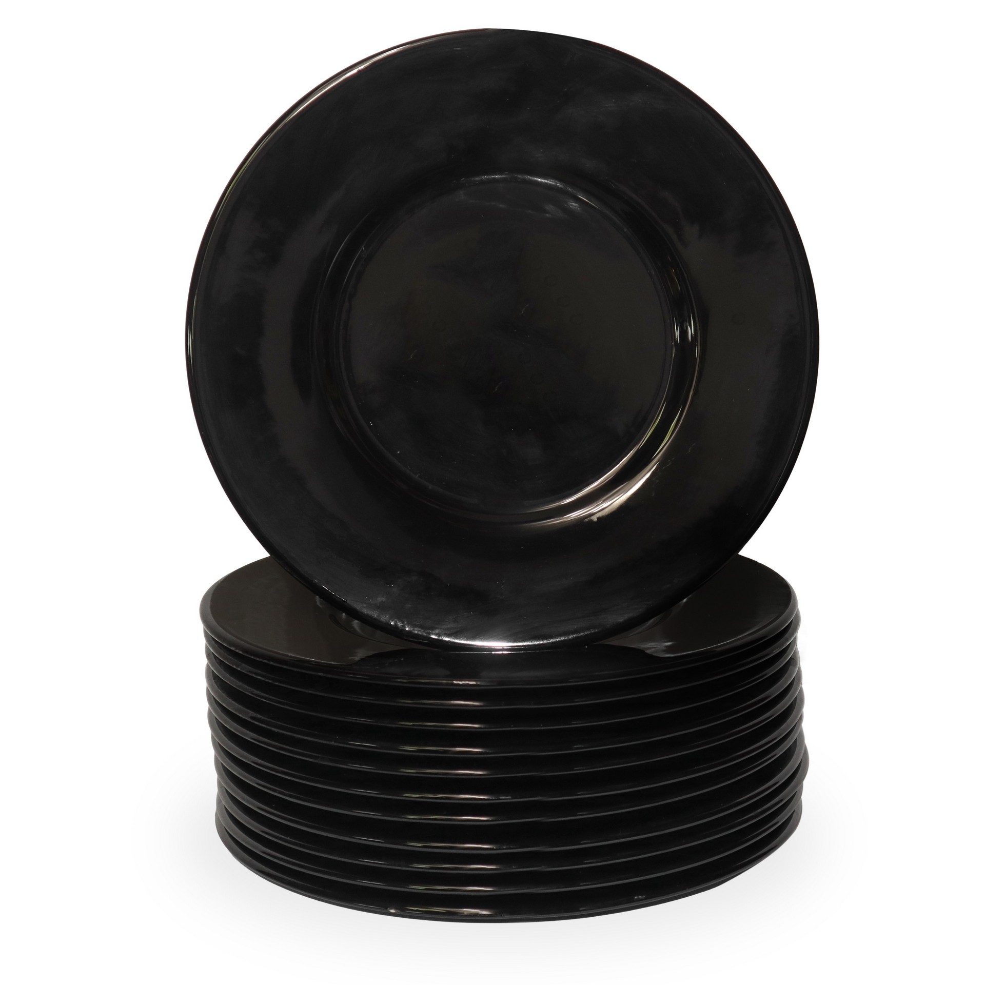 Ceramiche Este - N°12 Sottopiatti in ceramica smaltata nera diametro cm 32,5 marchio della manifattura alla base