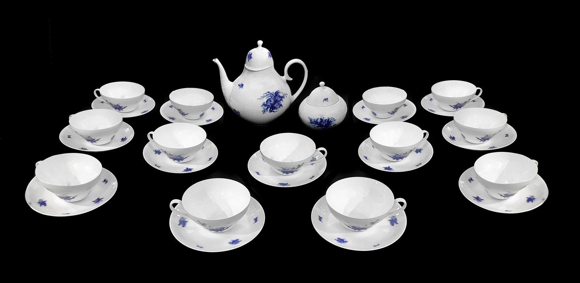 Rosenthal (1879) - Servizio da te inporcellana, mod Romance in Blue, 1950s Composto da teiera,zuccheriera, 12 tazze da te e 12 piattini.