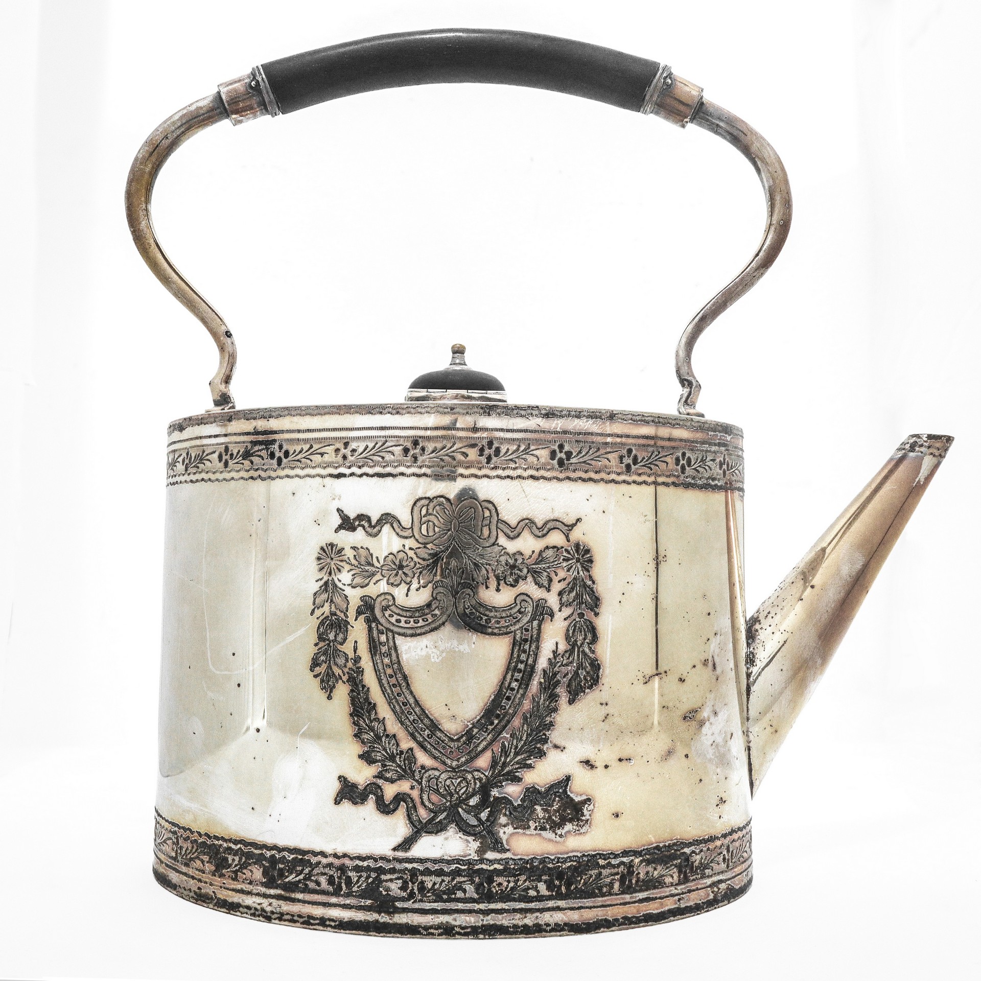 Lot 247 | Teiera in sheffield con decori fronte e retro