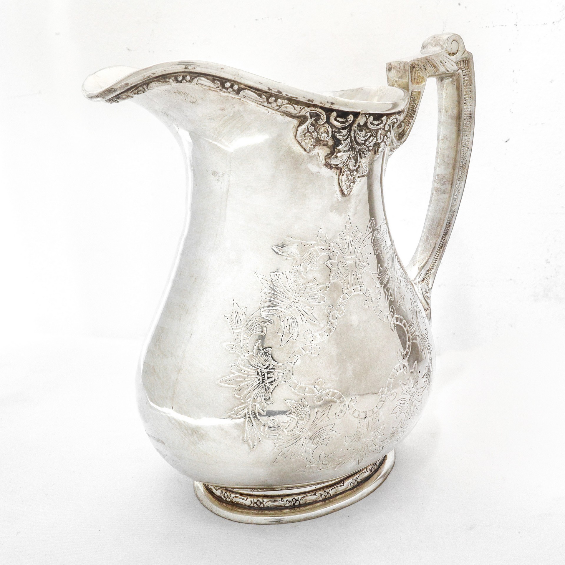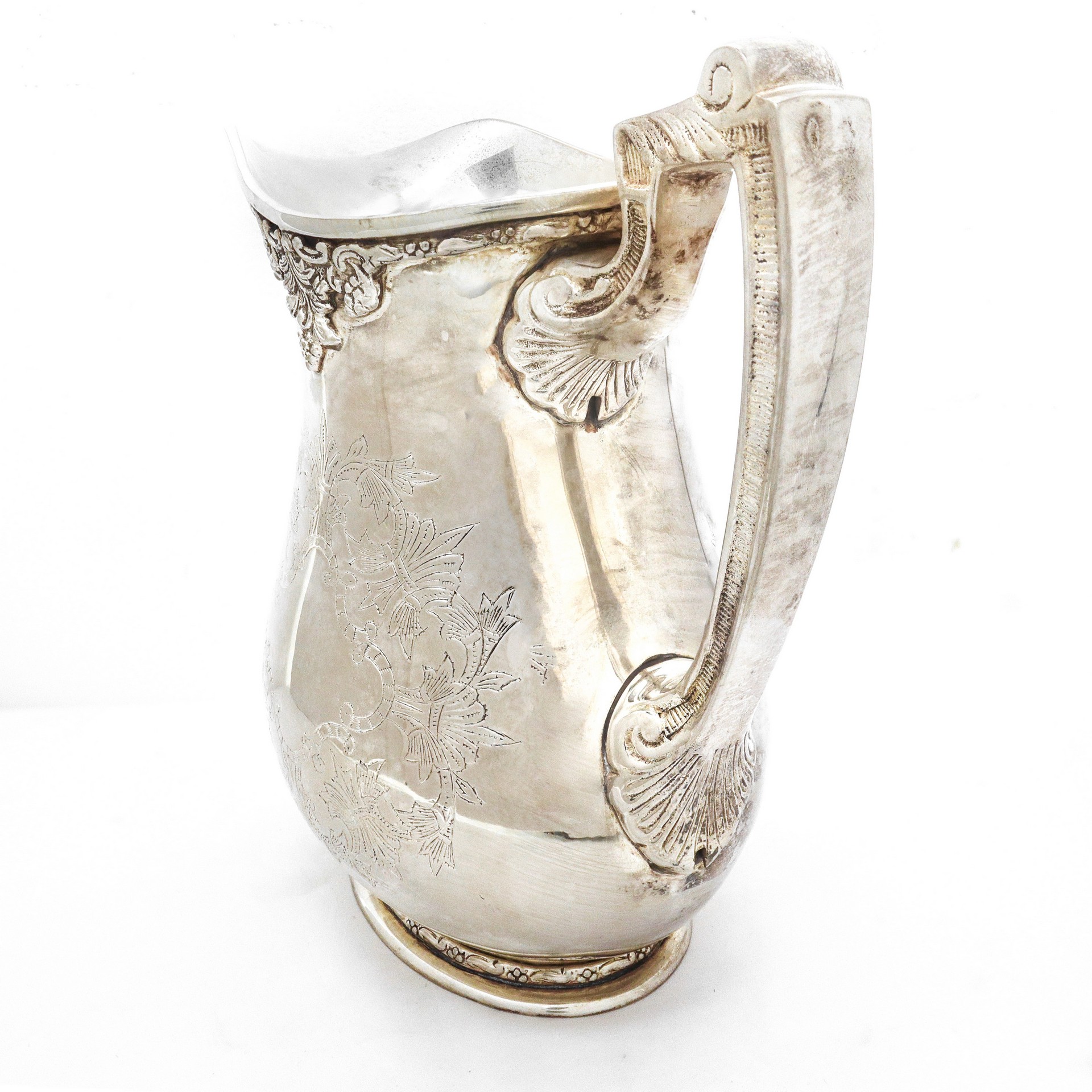 Brocca vittoriana in sheffield con decori sul fronte sul retro e sulla presa h cm 22
