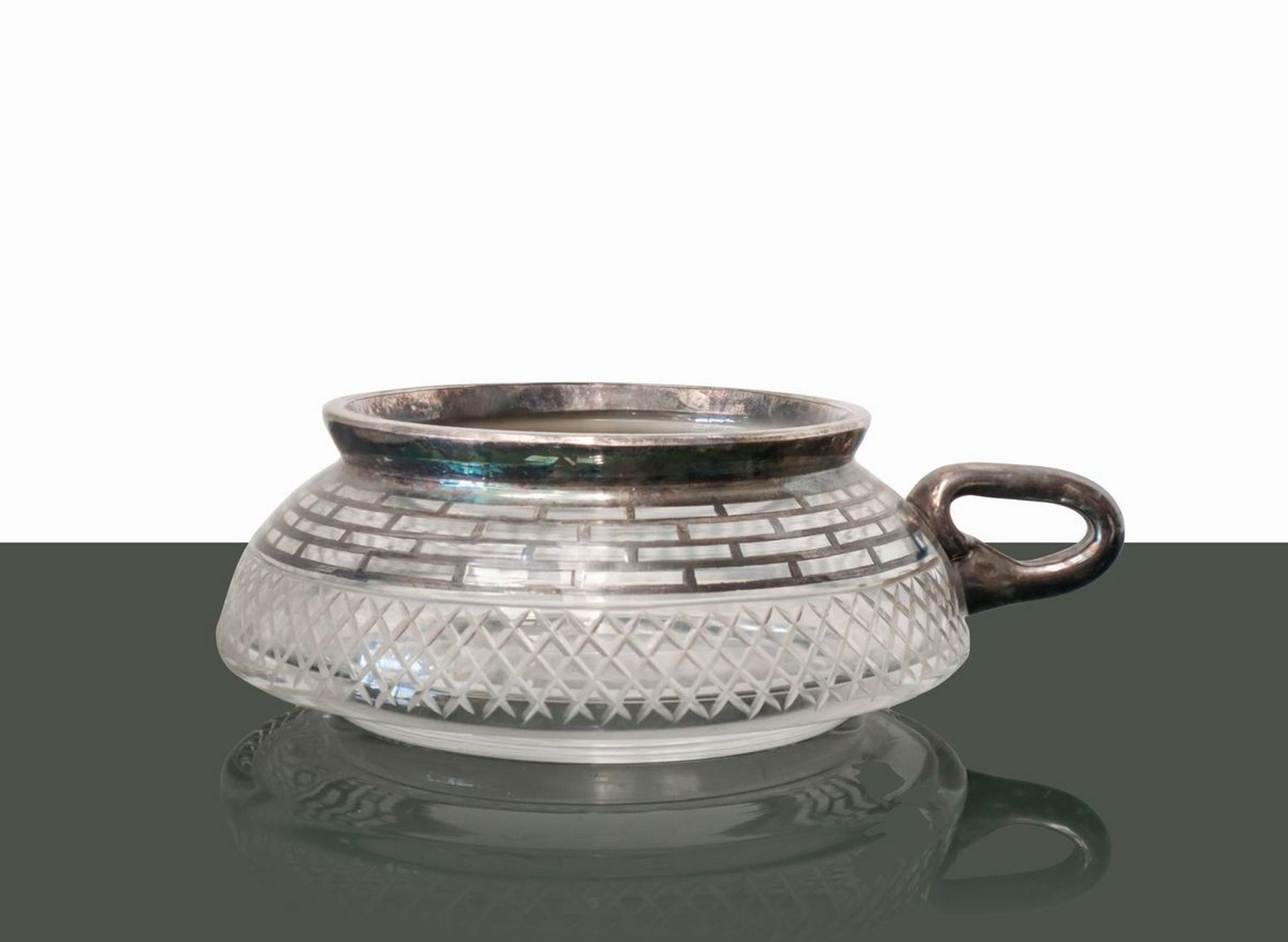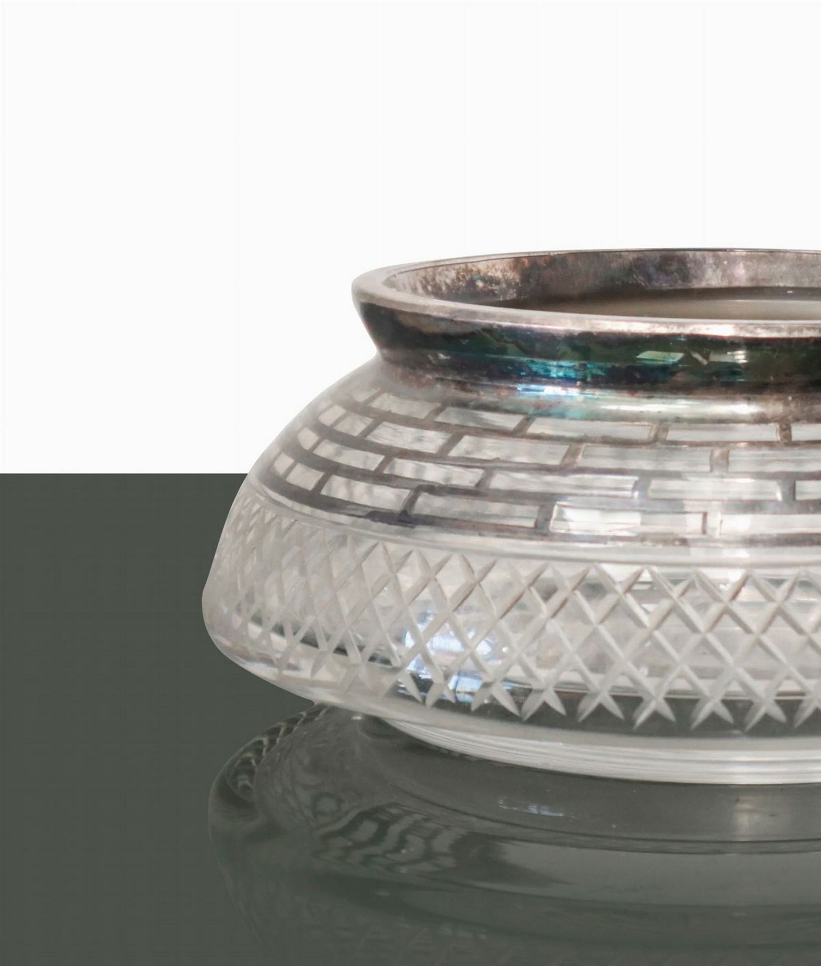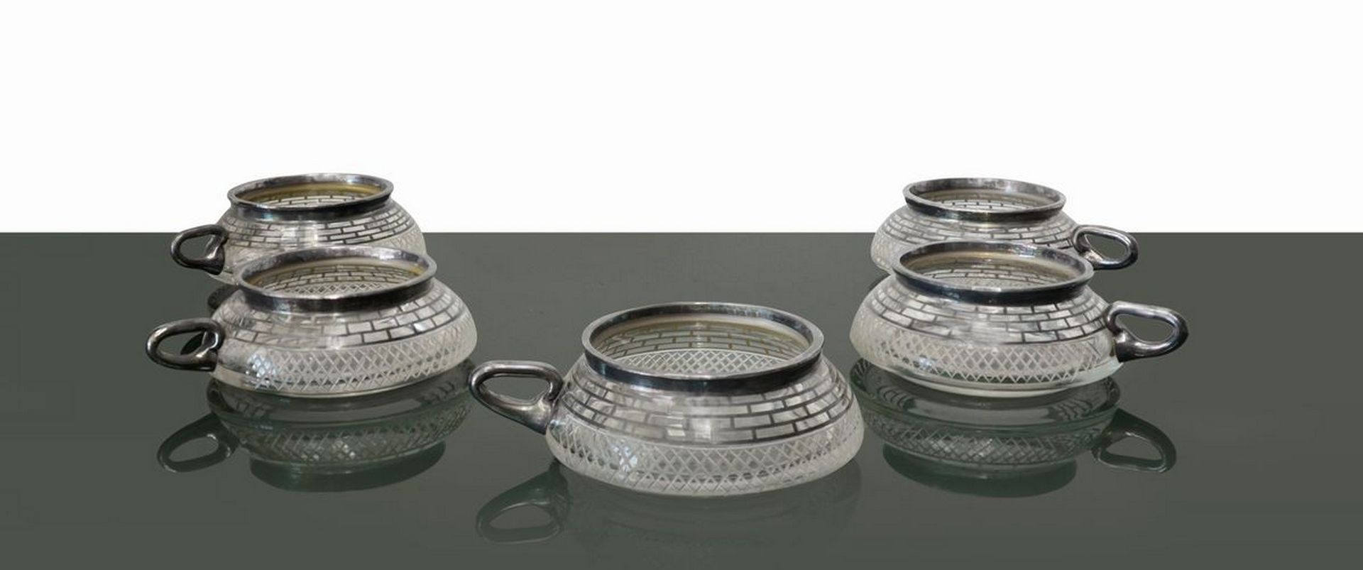 N. 5 salsiere in vetro e decorazioni color argento. Diametro cm 12, H cm 6