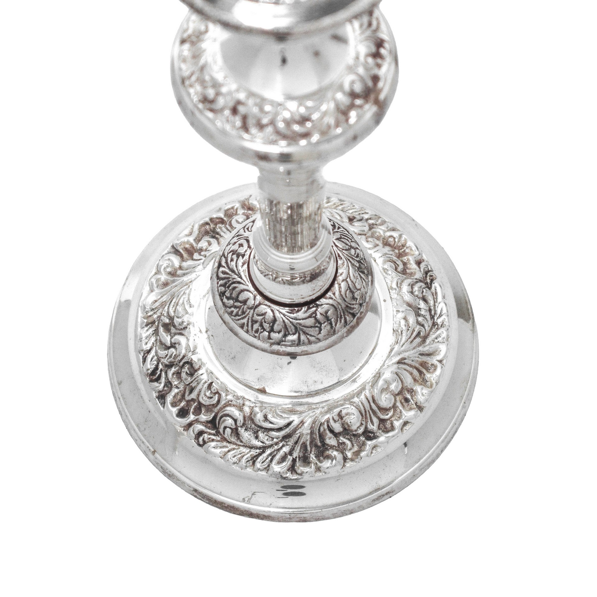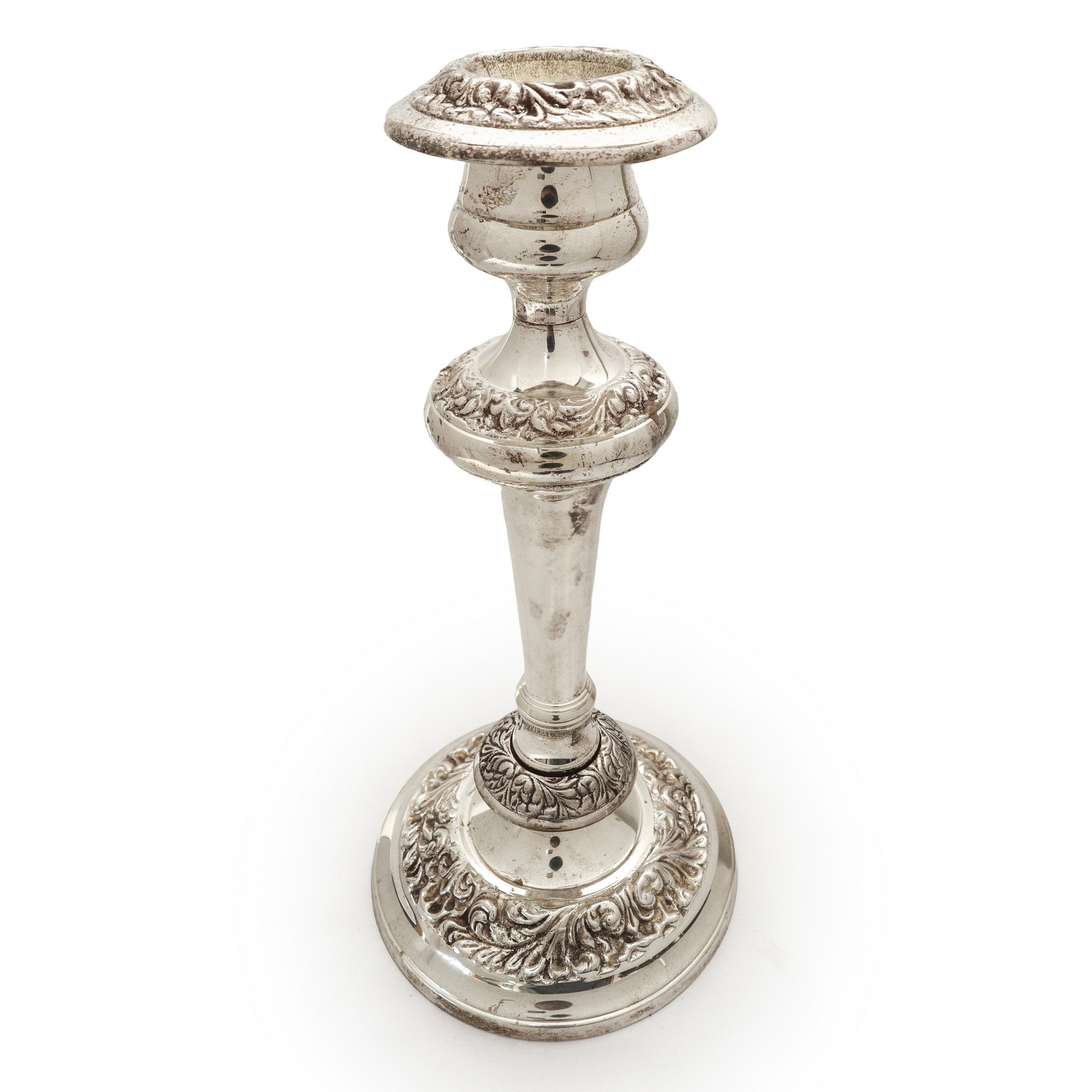 Coppia di candelabri monoforo in sheffield con lavorazione a ramage h cm 27 cadauno