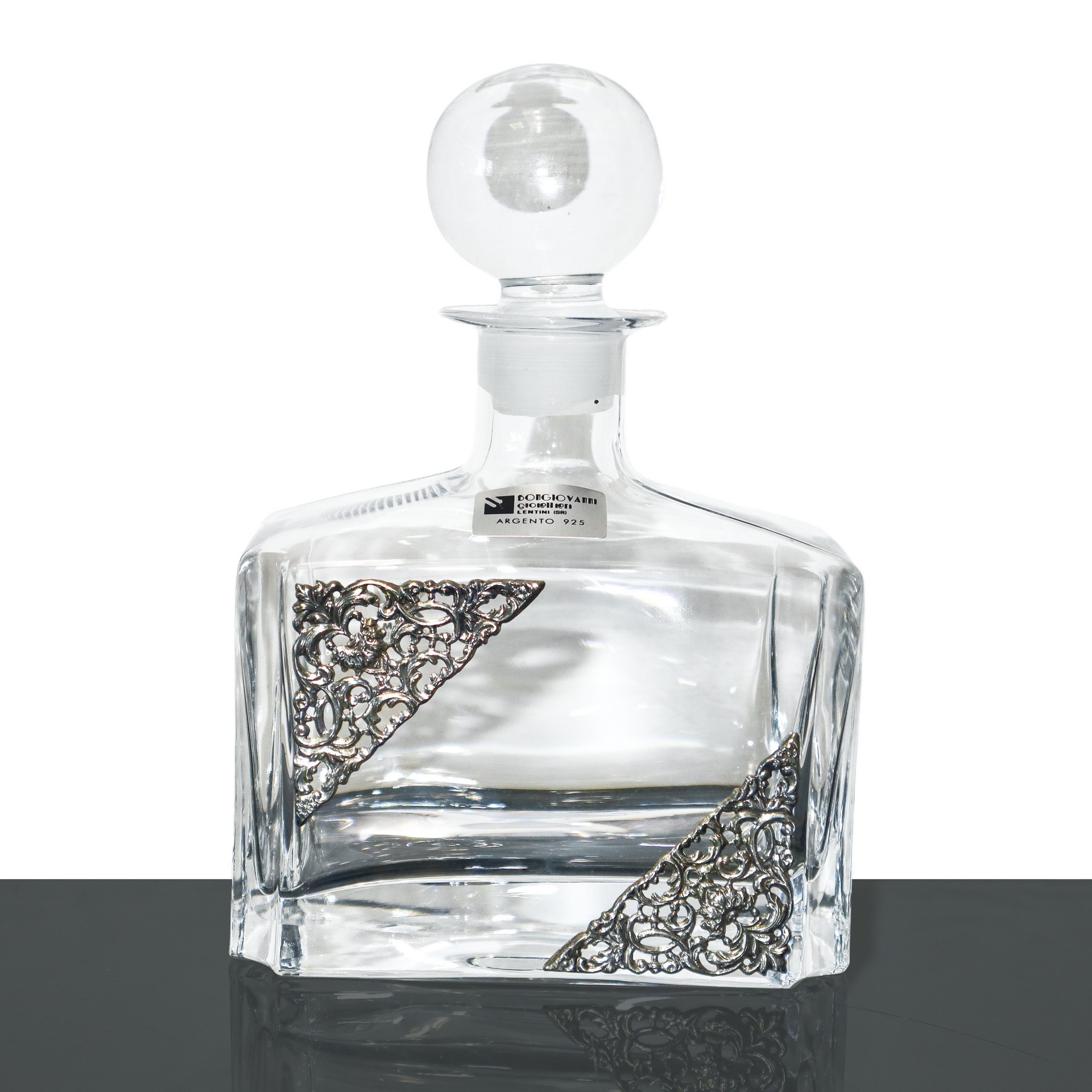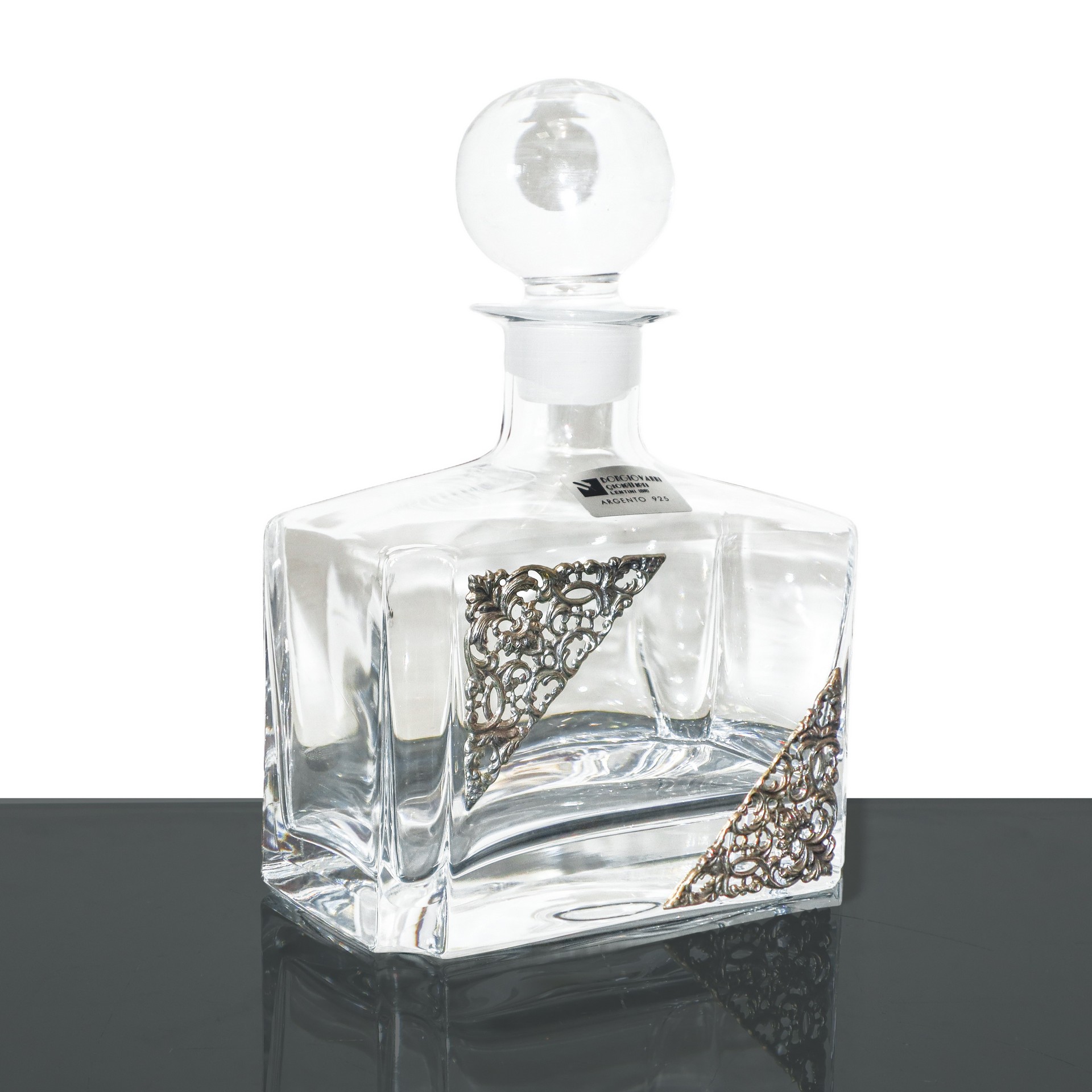 Bottiglia in cristallo con applicazioni in argento 925 cm 24X16 Dotata di scatola