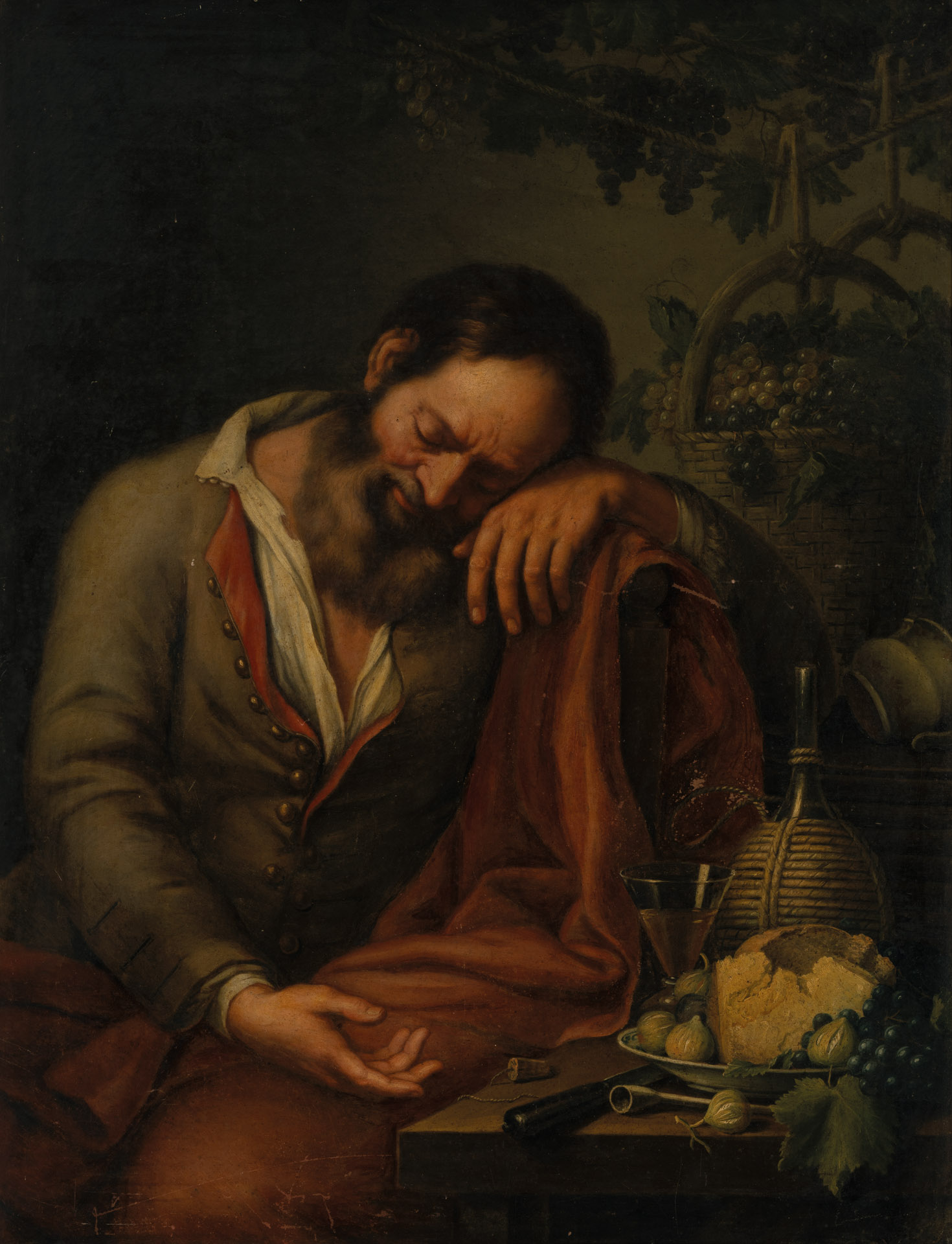 Süditalienische Schule/Scuola Italia settentrionale Ende 18. Jh. Uomo che riposa accanto ad un tavolo (Allegoria d’autunno?);Olio su tela, 114 x 88 cm