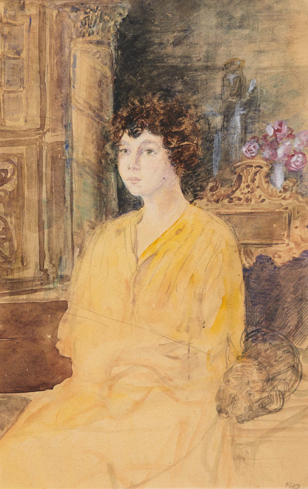 Fritz von Herzmanovsky-Orlando (Wien/Vienna 1877 - Meran/Merano 1954) Donna con cane, 1920 ca.;Acquerello, matita, 29 x 19 cm, in cornice