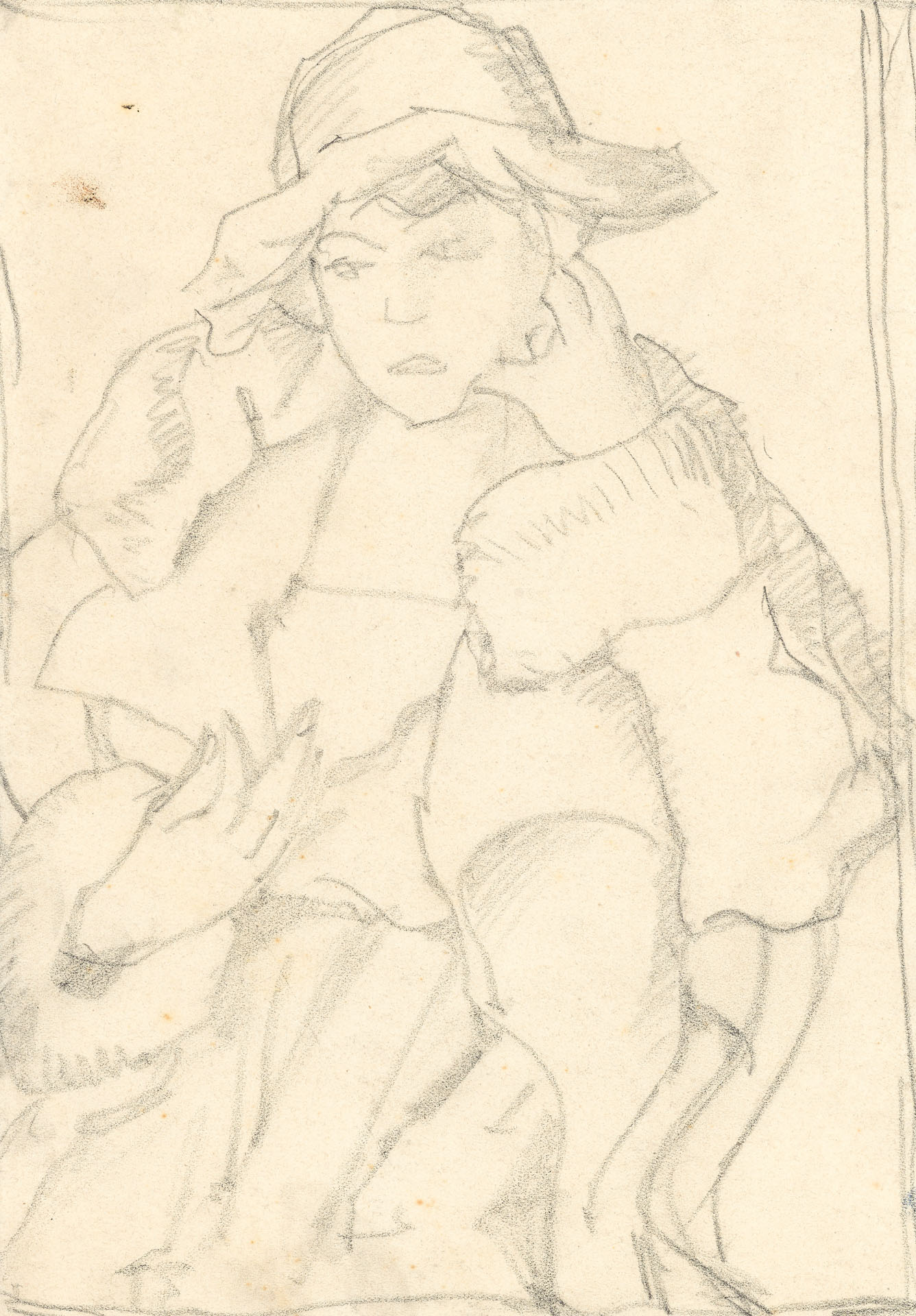 Ernst Nepo (Dauba, Böhmen 1895 - Innsbruck 1971) Donna con pelliccia, 1921;Gessetti neri, 26 x 18 cm, in cornice