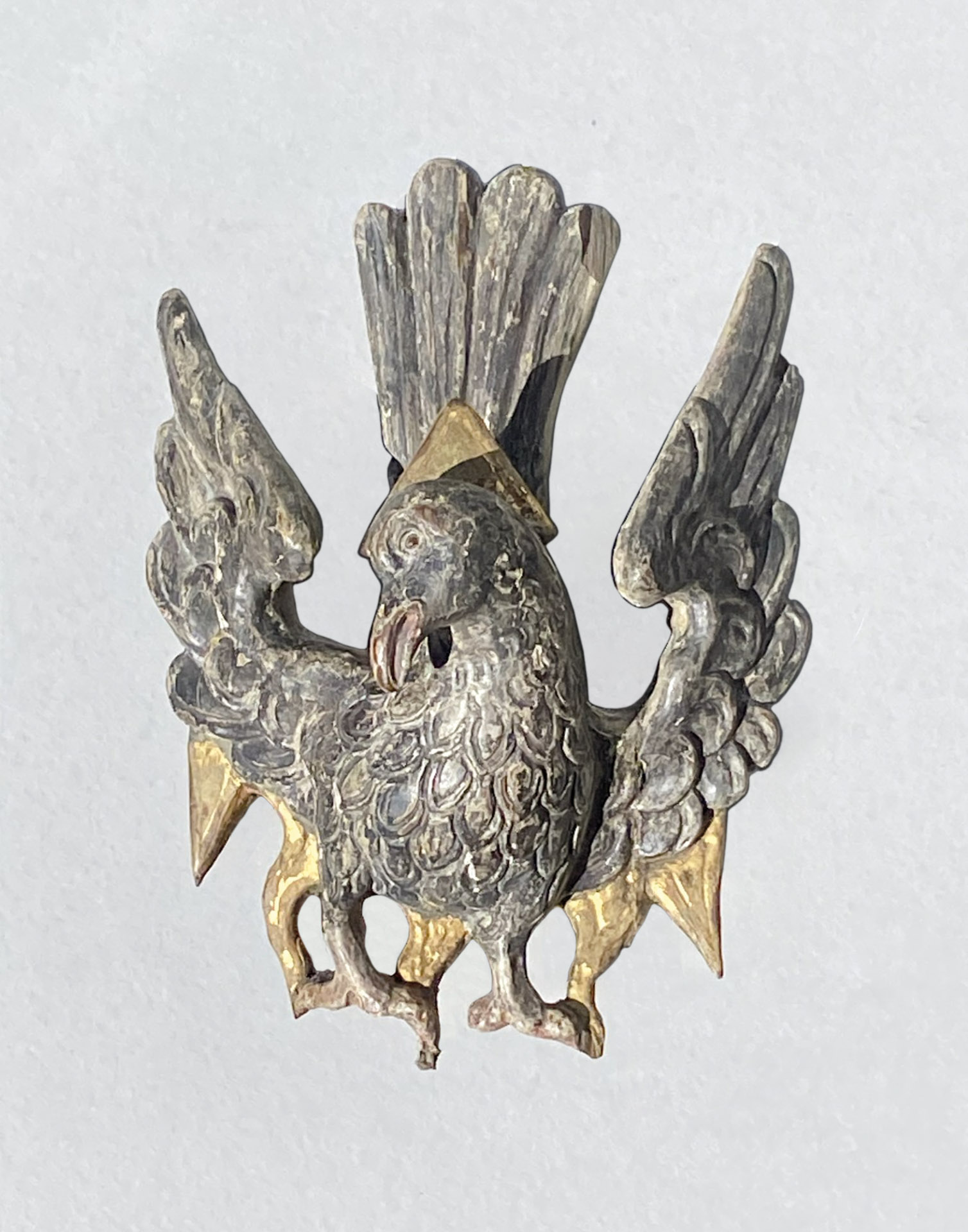 Alpenländisch/Regione alpina, Colomba dello Spirito Santo, XVIII-XIX secolo;Legno dipinto, 28,5 cm, danni dovuti all’età.