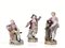 in porcellana policroma modellate rispettivamente a gentiluomo con ghirlanda di fiori, gentiluomo che legge e gentiluomo con nido nel cappello, alt. cm 16; 13 e 18 (3)