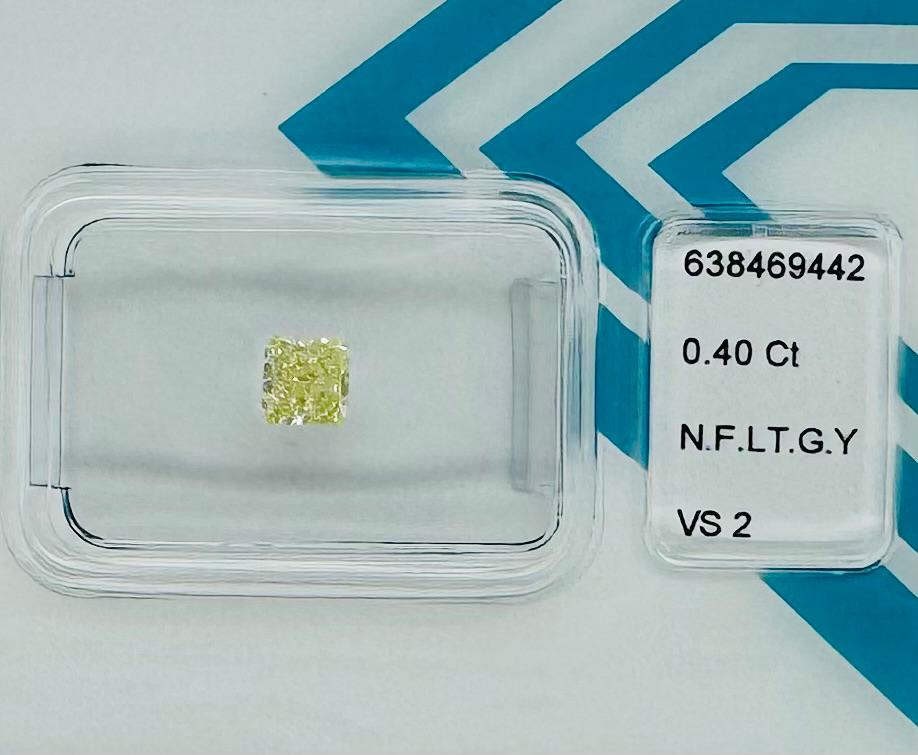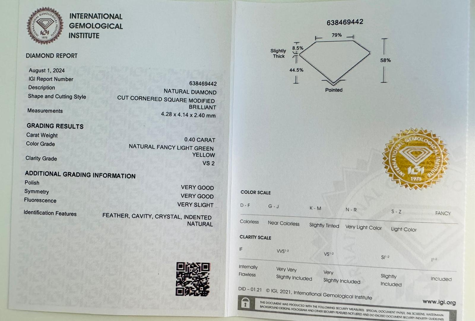 DIAMANTE NATURAL POLISHED 0,4 CARATI GIALLO VERDE CHIARO - PUREZZA VS2 - CERTIFICATO IGI - EY40701 - 6 - COMMISSIONE D’ASTA 25%