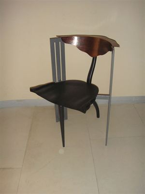 SIPEK BOREK 1949 Otra Otenek per Vitra edition 1988 Struttura in metallo martellato e laccato. Due piedi in legno massello tornito, modenzato nero, schienale in rame, cm 75,5x52,5x58 Expo: Vitra Museum Hammered and lacquered metal structure.