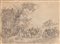 Scuola fiamminga, fine secolo XVIII - inizio secolo XIX ( ) - Scena di vita popolare con cavalieri presso un fontanile,