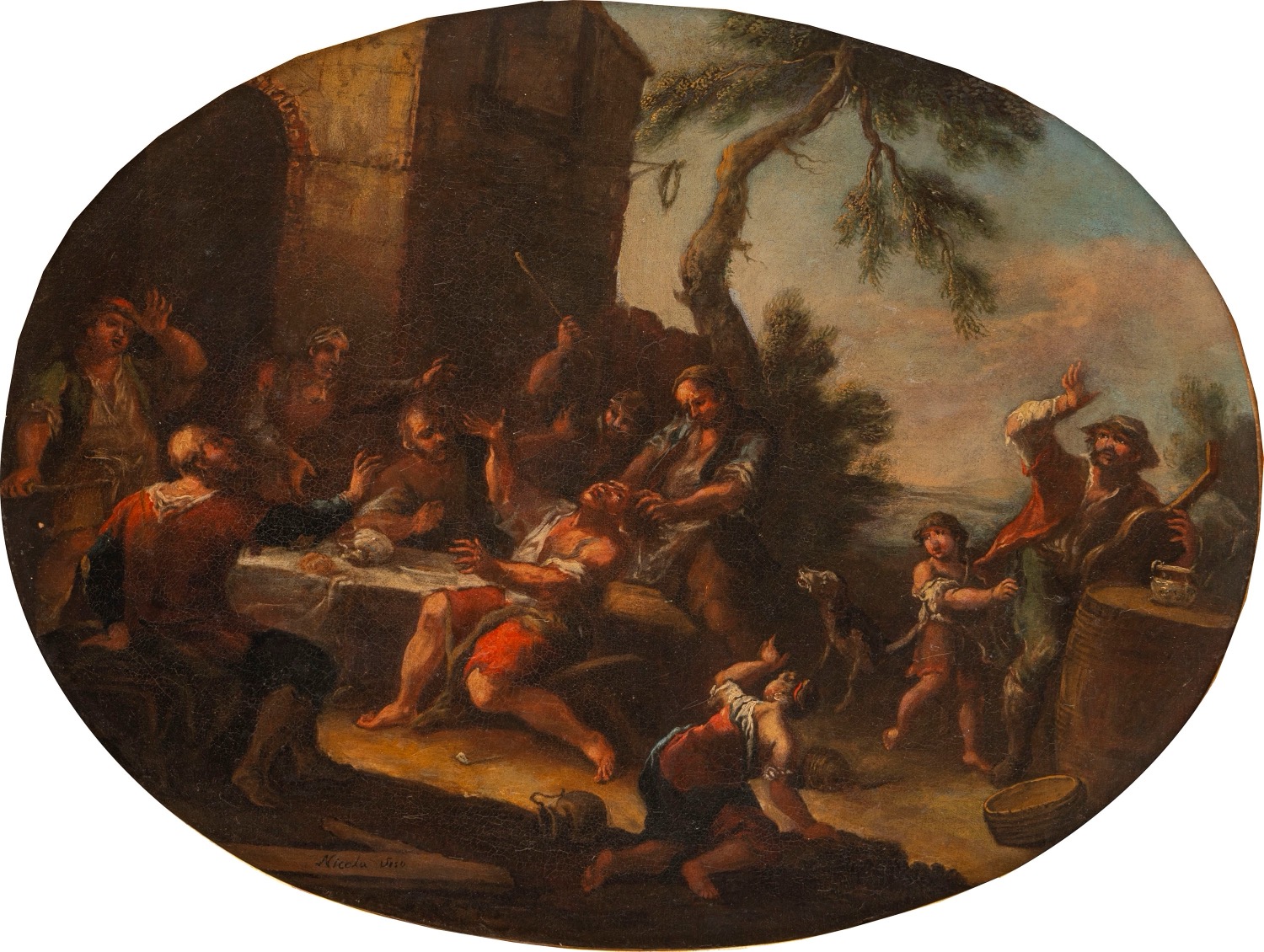Nicola Viso (attivo a Napoli nella prima metà del secolo XVIII) - Rissa all'esterno di un'osteria,
