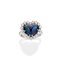 con zaffiro taglio cuore cabochon di ct 7,00 circa entro contorno in diamanti taglio brillante per totale ct 1,20 circa.