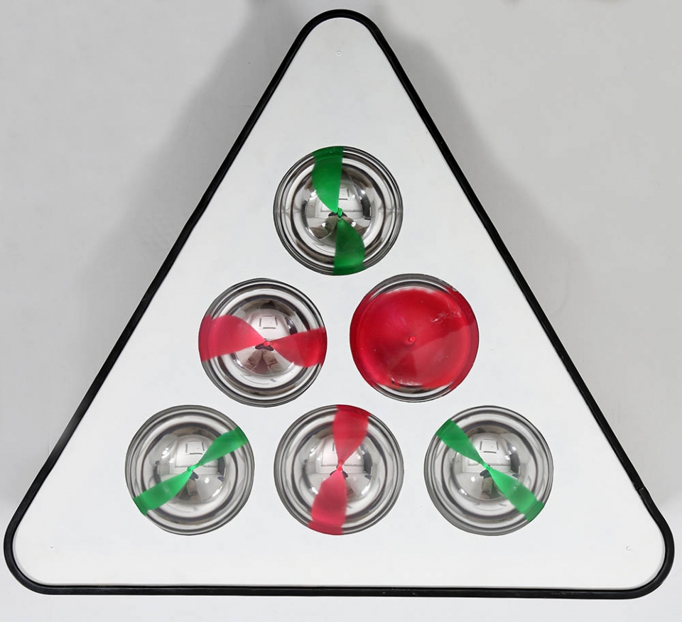 FRANCO COSTALONGA 1933 " OCVMC6TN ", 1971 Assemblaggio, 6 semisfere in box, cm. 63 x 71 x 8 Firmato e datato sul retro Autentica dell'artista su fotografia Prov. Collezione Privata