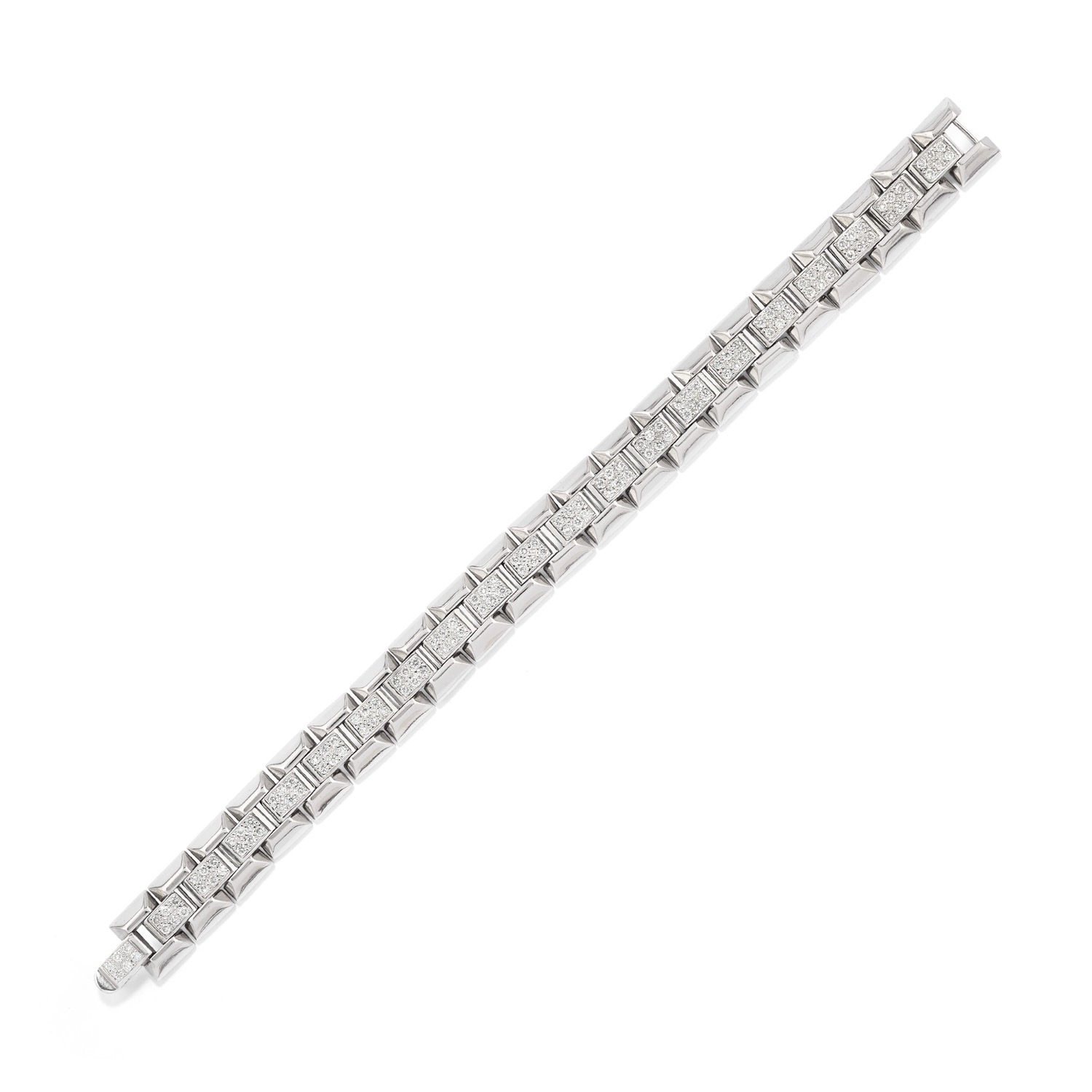 a maglie geometriche, decorate al centro da diamanti taglio brillante per totale ct 1,30 circa.