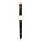 cassa rotonda, quadrante bianco con numeri romani in smalto nero, movimento a carica manuale, cinturino in pelle nero, con custodia, da revisionare.