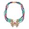 a cinque fili di rubini, zaffiri e smeraldi intervallati a interruttori in oro e diamanti, al centro farfalla in zaffiri, rubini e smeraldi taglio rotondo, diamanti taglio brillante e huit-huit.