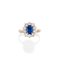 a fiore con al centro zaffiro taglio ovale di ct 1,60 circa, contorno in diamanti taglio brillante per totale ct 0,50 circa.
