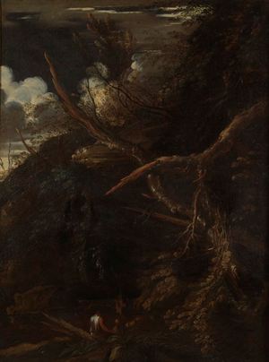 ROSA SALVATOR (BOTTEGA DI) 1615-1673 Figure nella selva Olio su tela 98x73 cm Oil on canvas