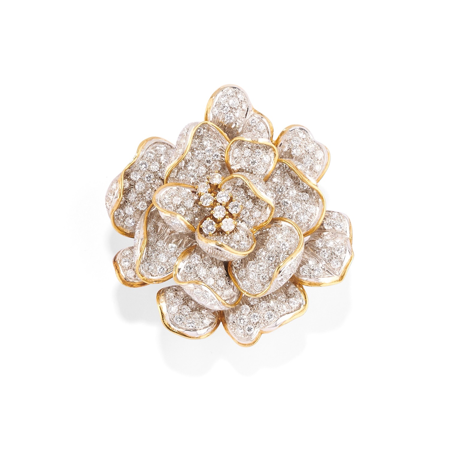 Lot 657 | Spilla con diamanti in oro bicolore 18k