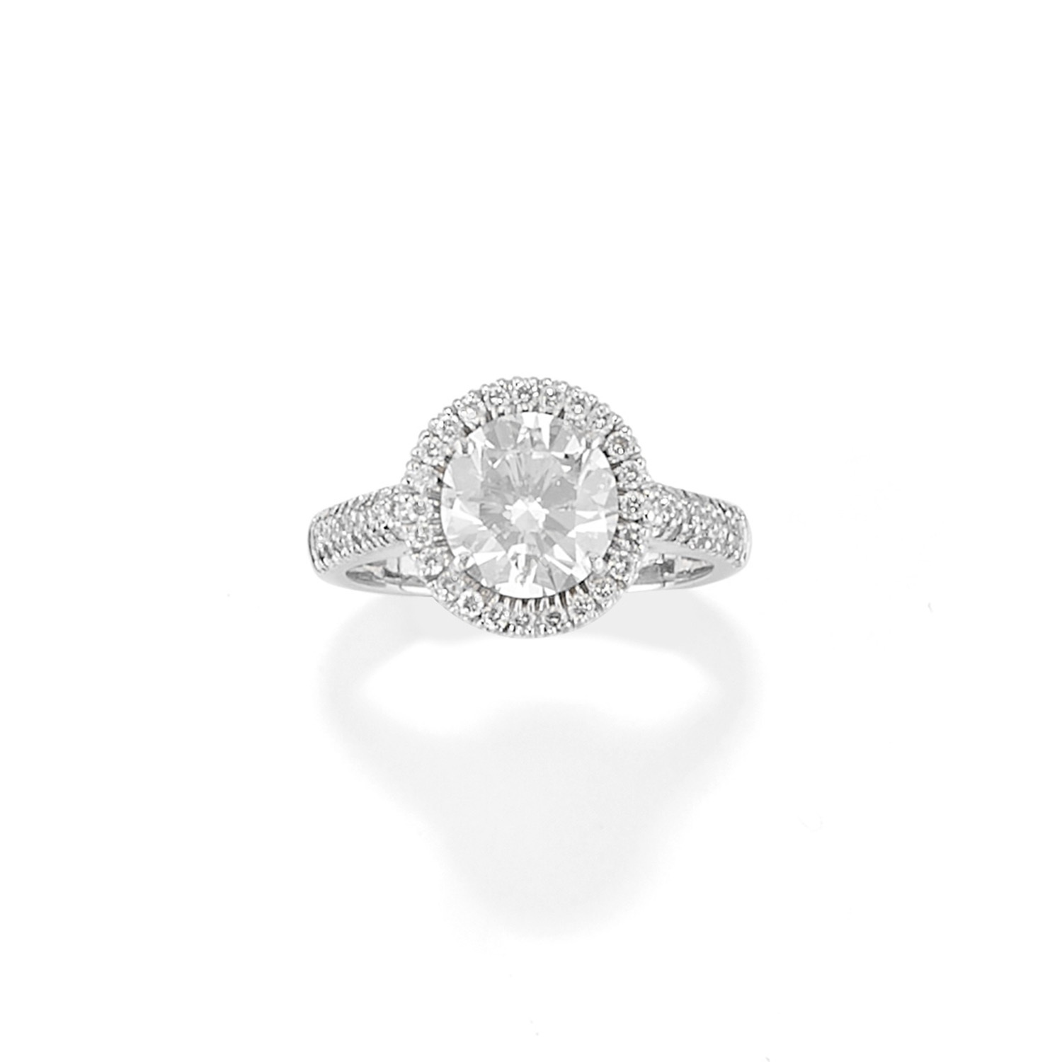 al centro diamante taglio brillante di ct 1,72 (caratura incisa) colore D purezza SI2 (incisi) decorato da diamanti taglio brillante per totale ct 0,33 (caratura incisa).