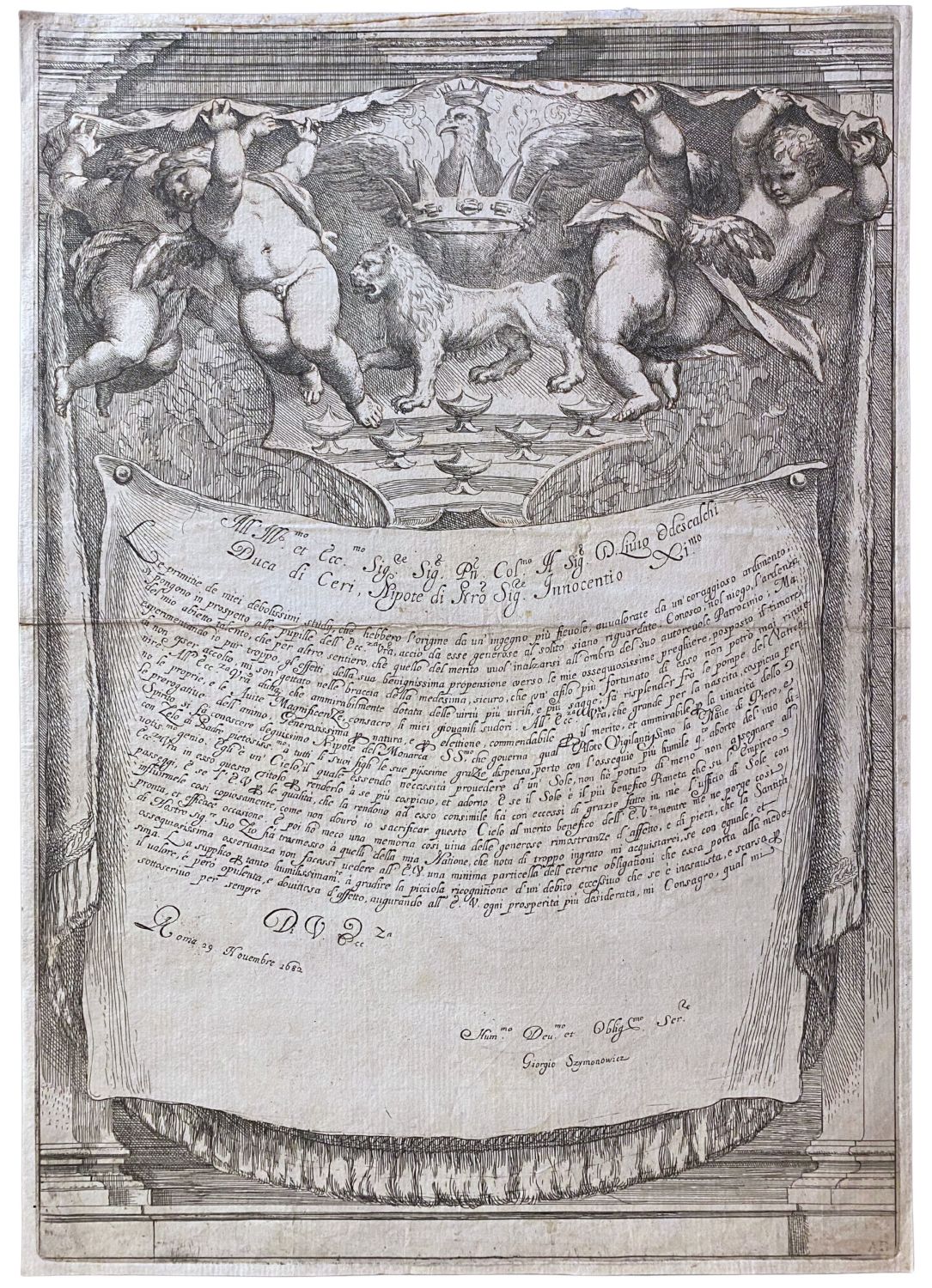 Acquaforte, 445 x 312 mm. Cartiglio con la dedica a Livio Odescalchi, firmata da Szymonowicz.
