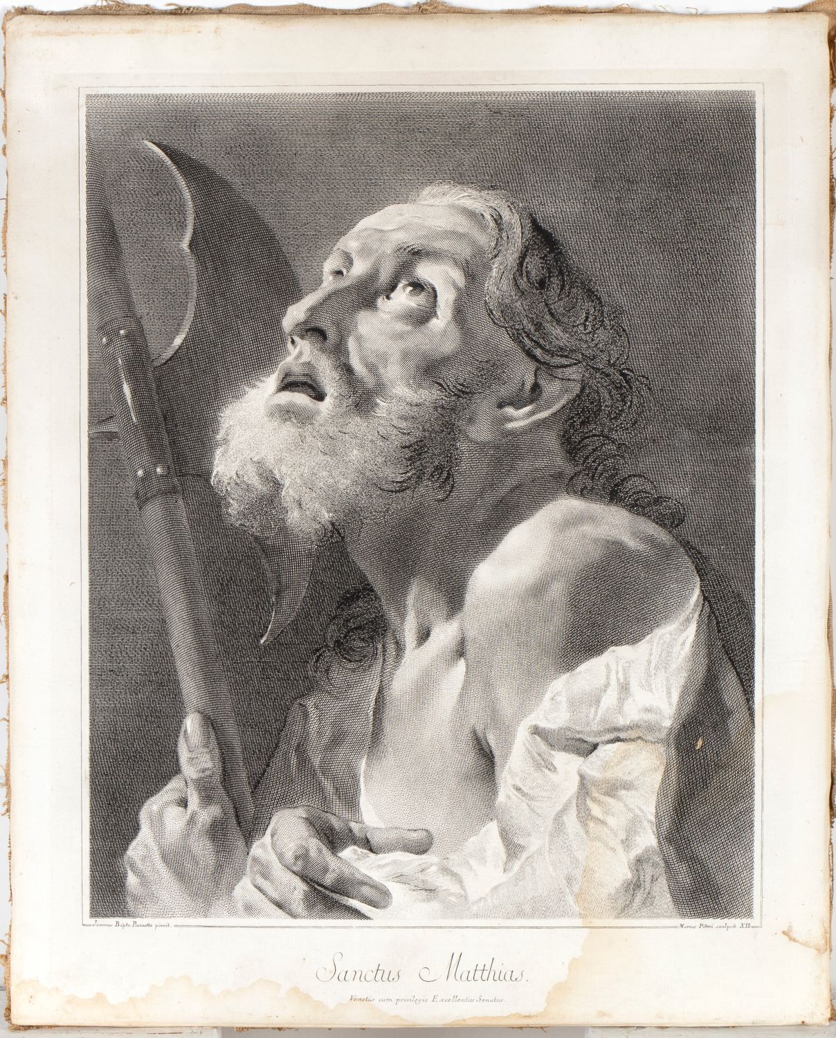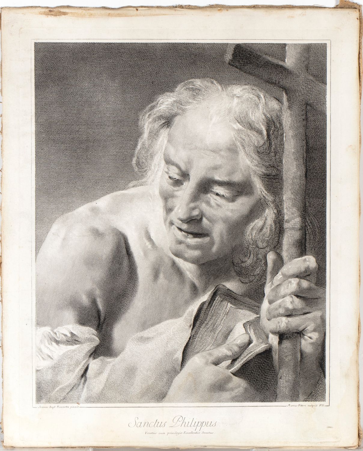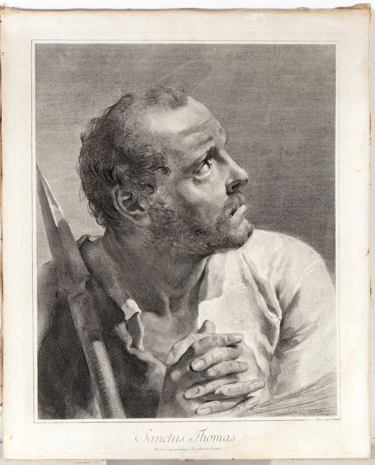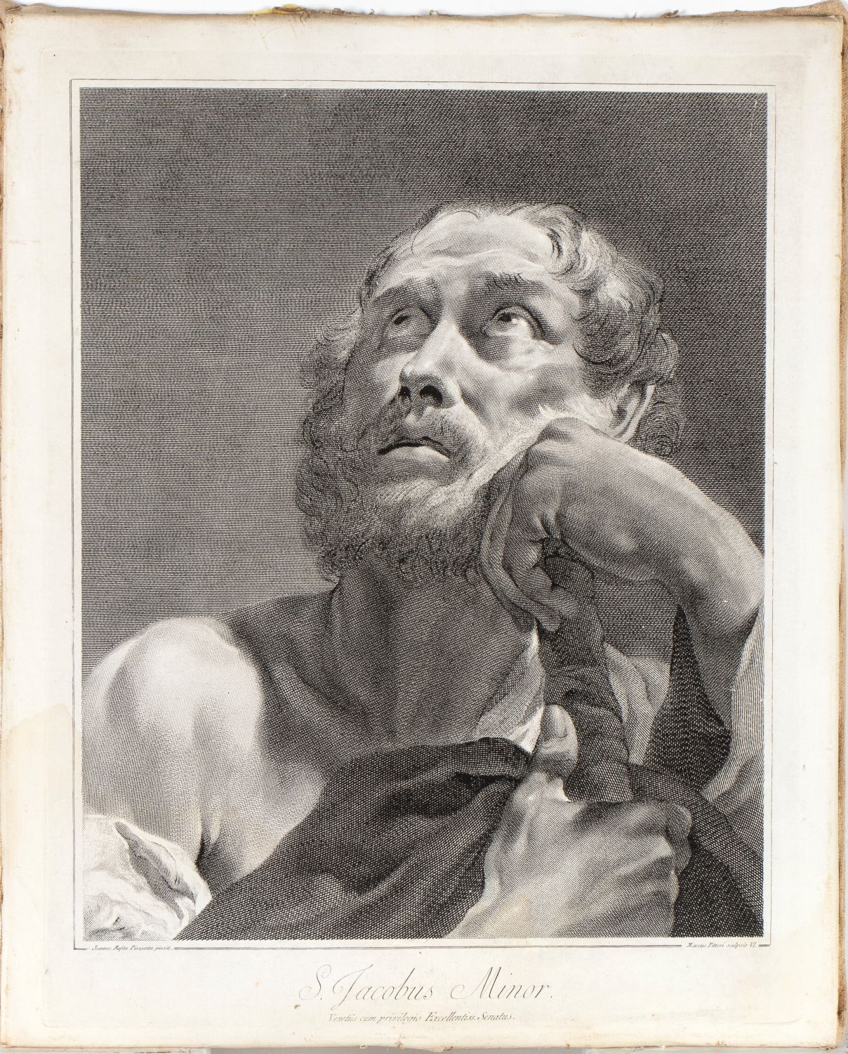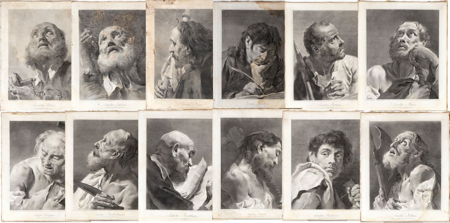 Serie completa di dodici incisioni raffiguranti gli apostoli, dai dipinti di Piazzetta. Bulino, 470 x 375 mm ca. (cad. foglio)