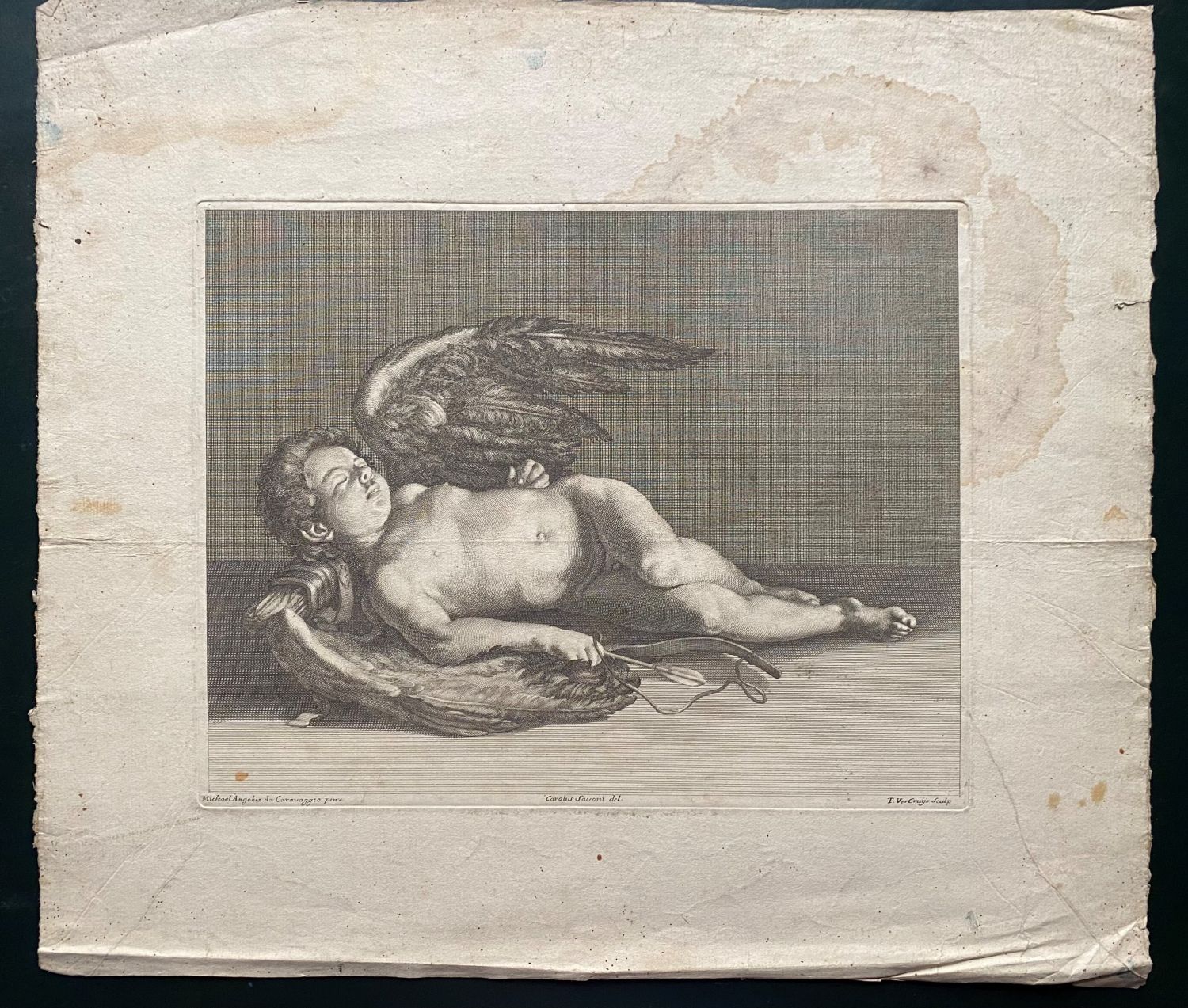 Theodore Verkruys (fl. 1707 - 1739) Cupido dormiente, da Caravaggio