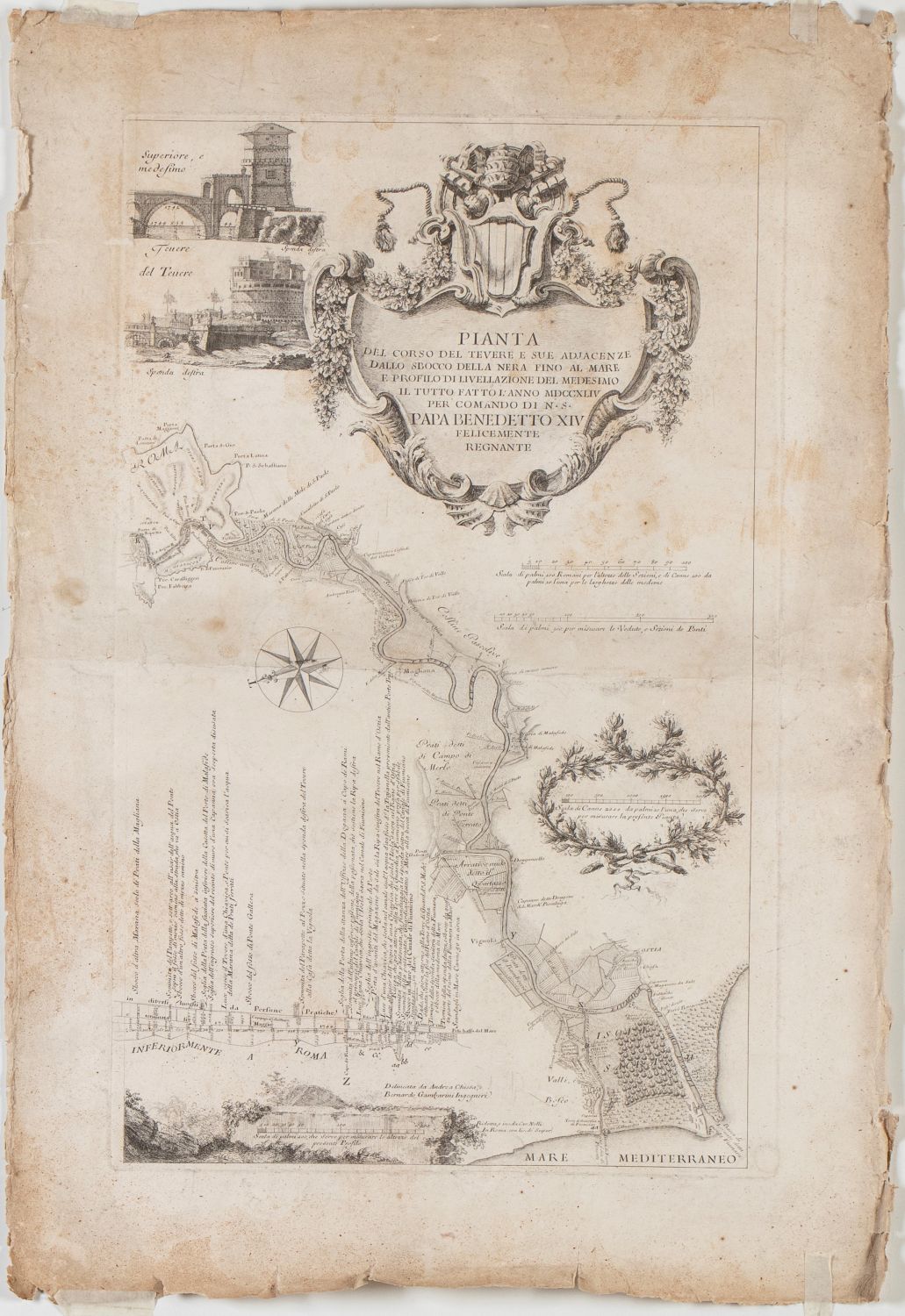 Giovanni Battista Piranesi - Carlo Nolli (Mogliano Veneto, 1720 - Venezia, 1778) , (1724 - 1770) Andamento del corso del Tevere, e sue adiacenze 1744