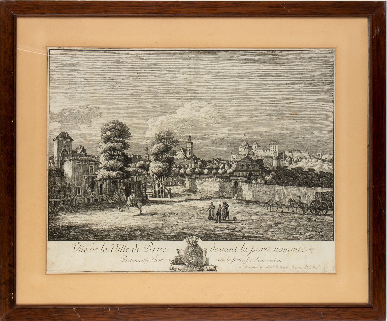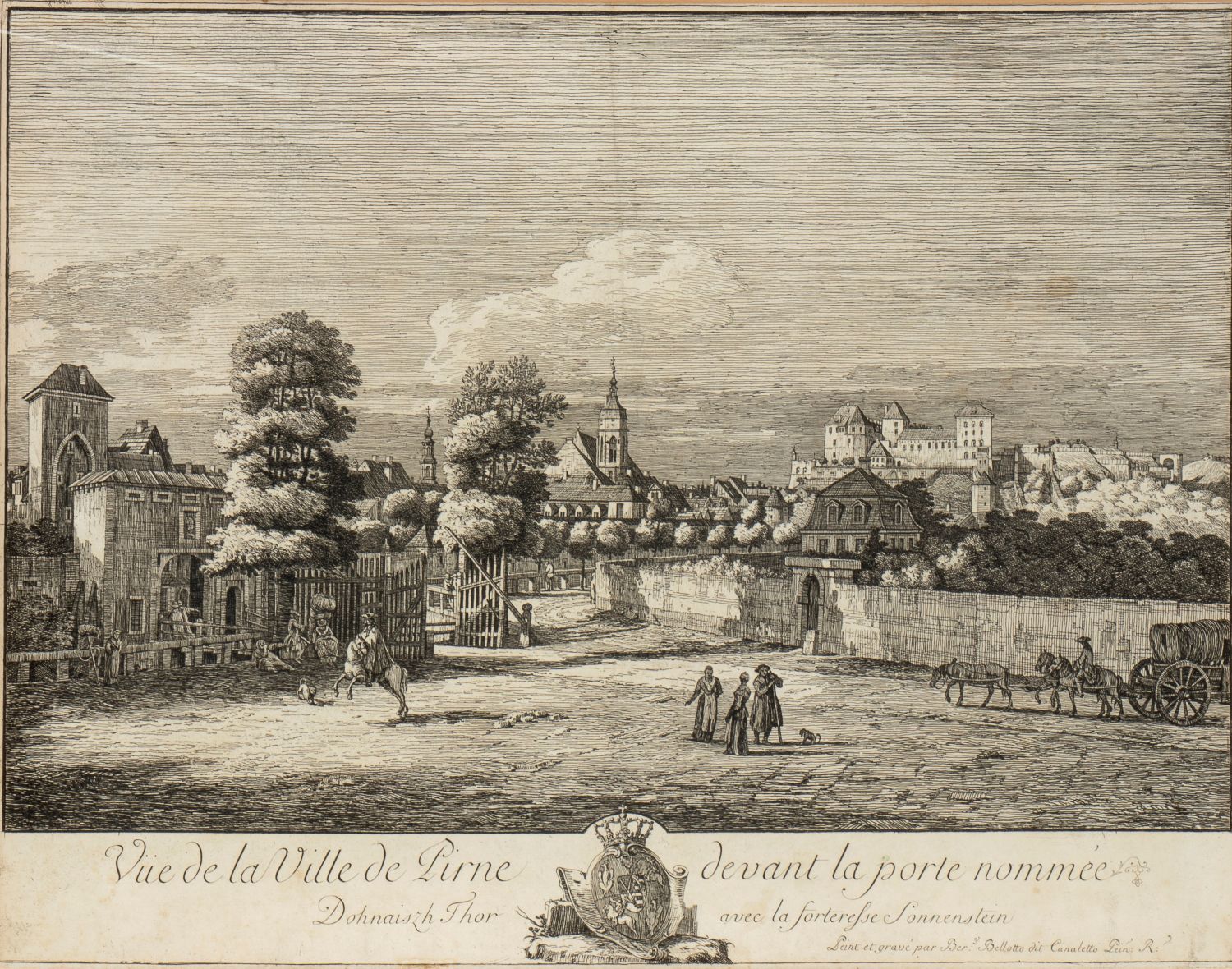 Bernardo Bellotto (1722 - 1780) Vue de la ville de Pirne devant la porte nommée Dohnaiszh-Thor, avec la forteresse Sonnenstein