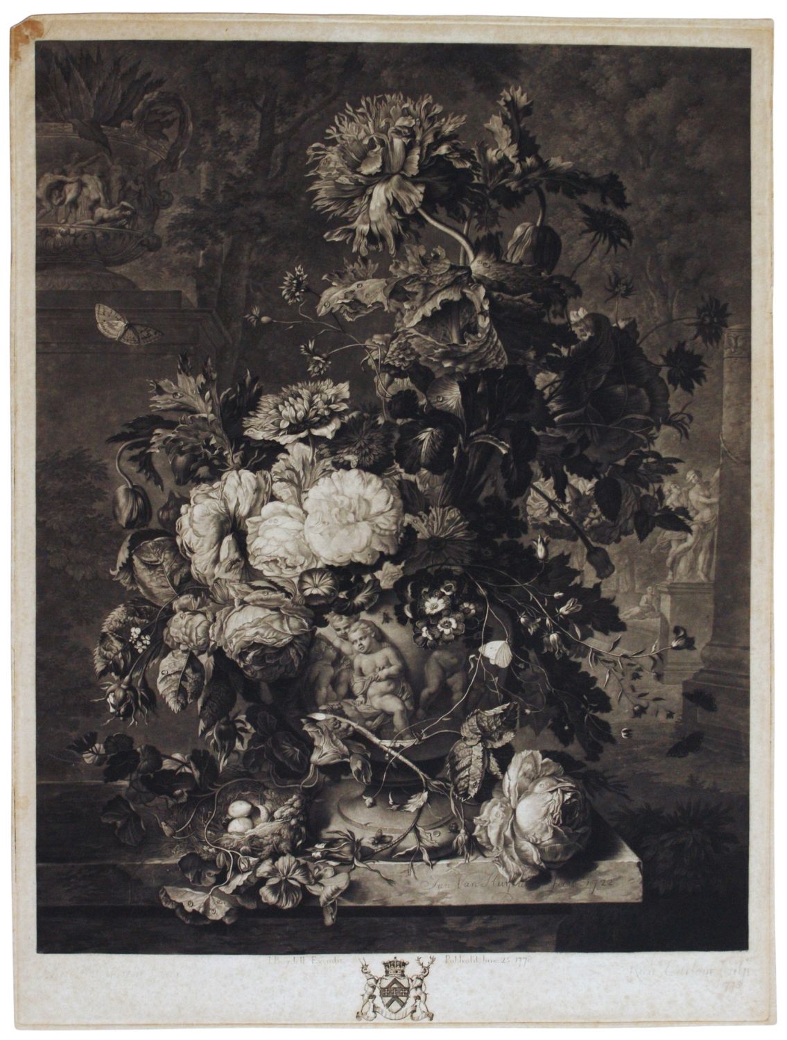 Richard Earlom (London, 1743 - 1822) Natura morta con vado di fiori, da Jan van Huysum 1778