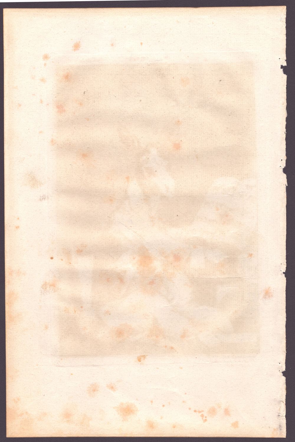 Molto bella impressione a inchiostro color seppia su carta vergata. Foglio in stato molto buono, salvo fioriture sparse. Grandi margini preservati. Con passe-partout moderno.