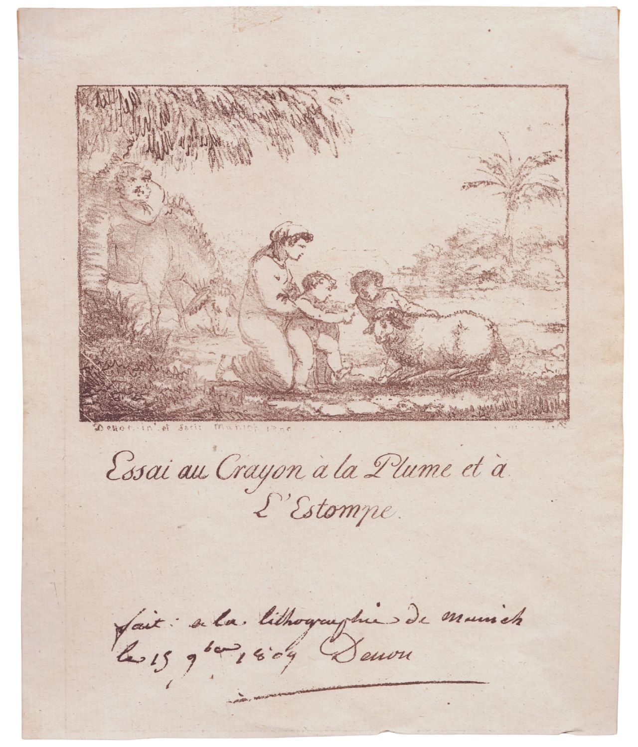 Litografia, 211 x 171 mm. Iscritta: "fait: a la lithographie de Munich le 15 9bre 1809 Denon". Chu 459.