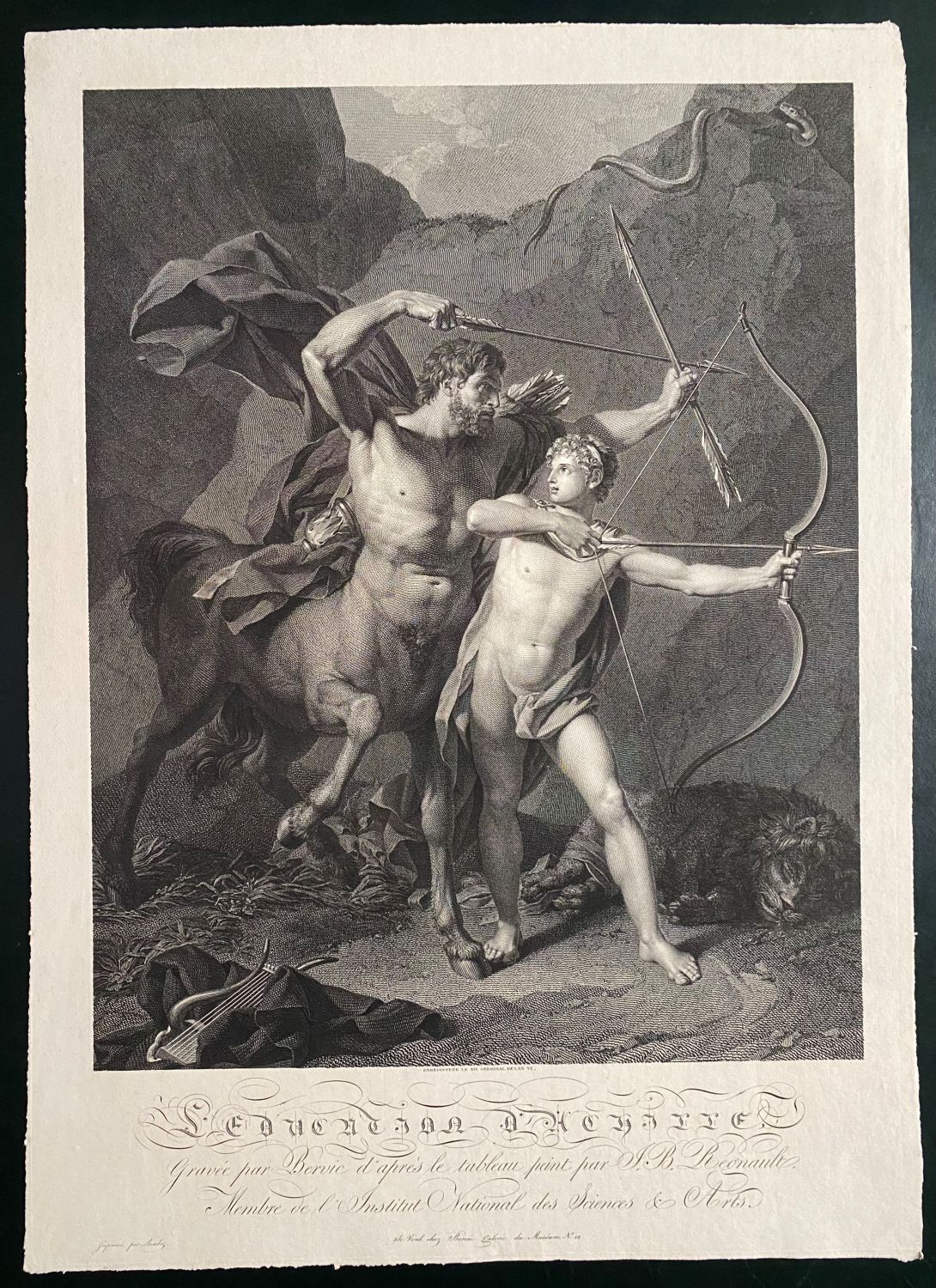 Molto belle impressioni su carta vergata pesante. L’Enlèvement de Déjanire in ottimo stato di conservazione. L’Éducation d’Achille con un restauro molto ben eseguito sul margine superiore sinistro e leggeri segni di fioritura, ma nel complesso anch’esso in ottimo stato di conservazione.