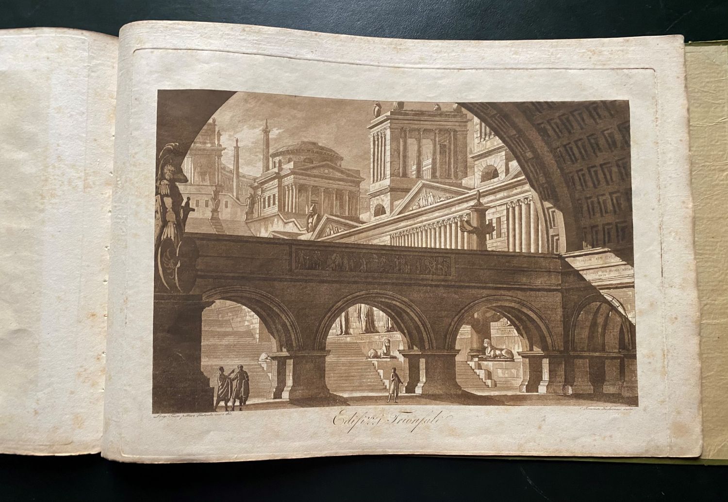 Otto incisioni + frontespizio. Acquatinta ad inchiostro bruno, 305 x 440 mm ca. (cad. foglio).