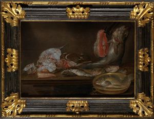ADRIAENSSEN ALEXANDER 1587-1661 Natura morta con pesci 1645 Olio su tavola...