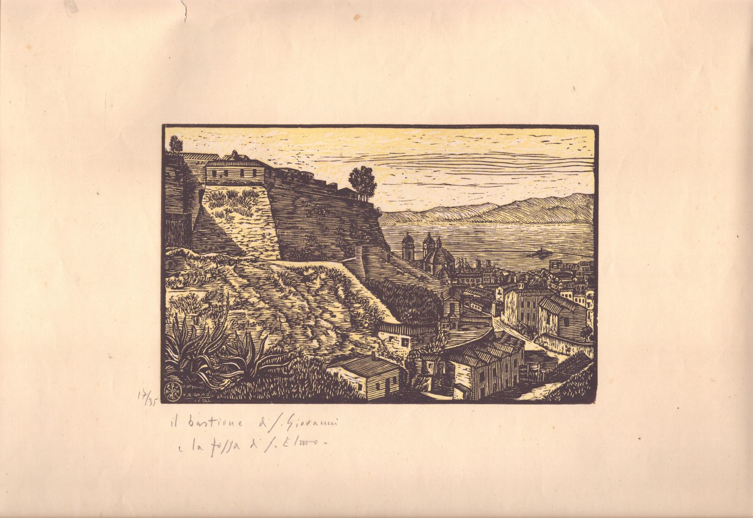 Raffaele Angelo Oppo (Oristano, 1898 - ) Il bastione di S. Giovanni e la fossa di S. Elmo (Valletta) 1944