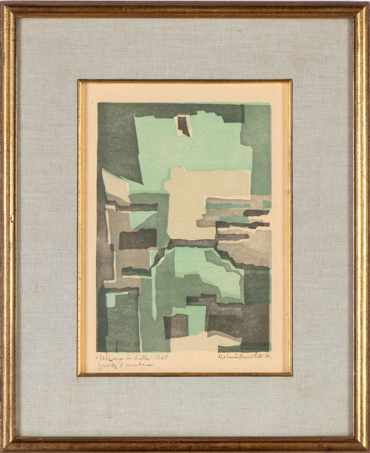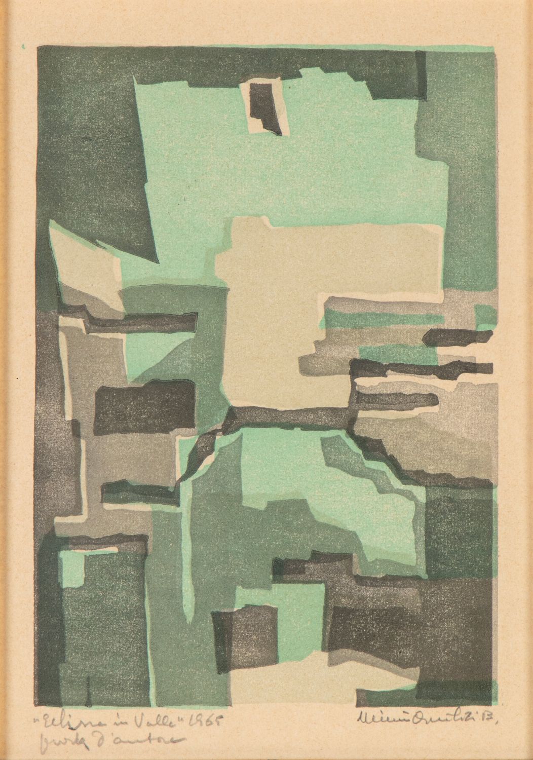 Litografia a tre colori, 275 x 190 mm ca. (foglio). Prova d'artista. Intitolata, datata e firmata a matita in basso.