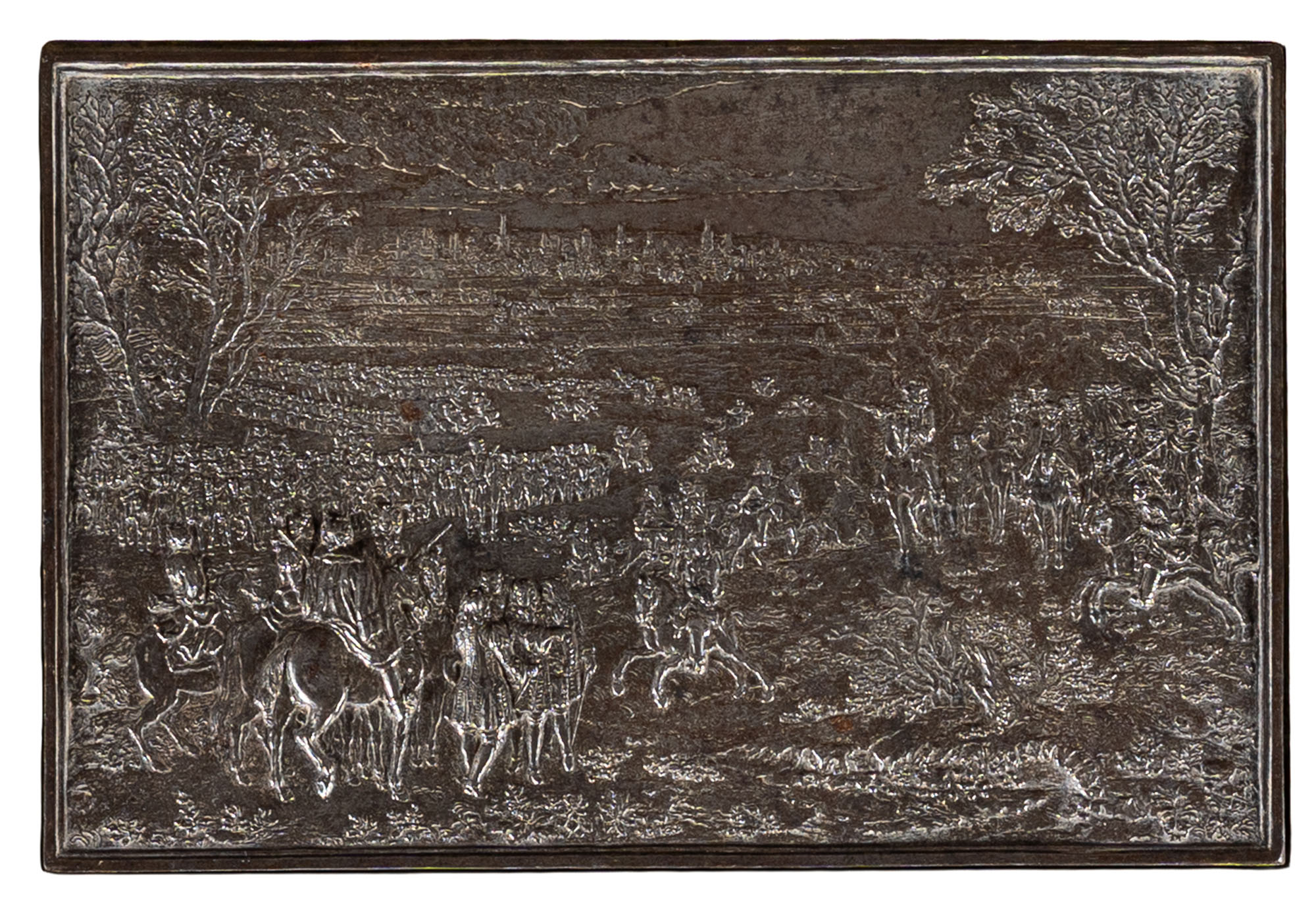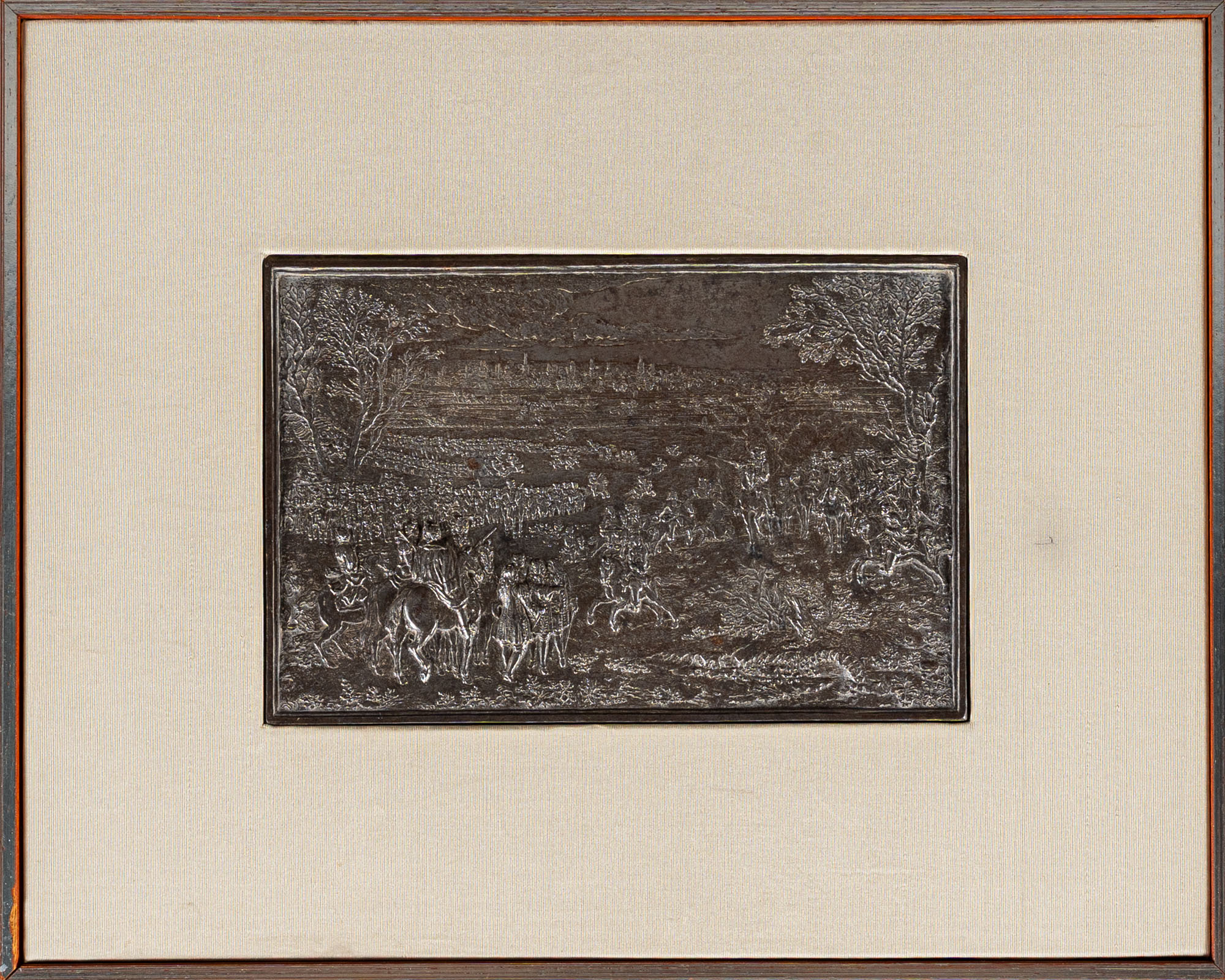 Scuola del secolo XVII, Cerchia di Van der Meulen - VedutaBassorilievo su metallo argentato11,7 x 18 cm