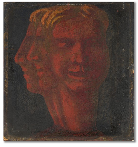 Cagnaccio di San Pietro "Giano trifronte" 1919 olio e tecnica mista su cartone c
