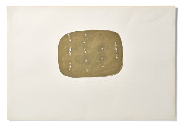 Lucio Fontana "Concetto spaziale" 1962-63 matita, buchi, strappi e tempera oro s
