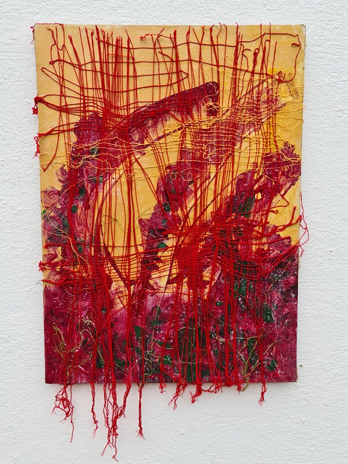 Rosaspina, De-Filage e tecnica mista su tela, 70x50 cm, RT076AF; Opera pubblicata nel Catalogo Generale dell'artista a cura di Antonio e Salvatore Falbo edizioni Mondadori , Milano
