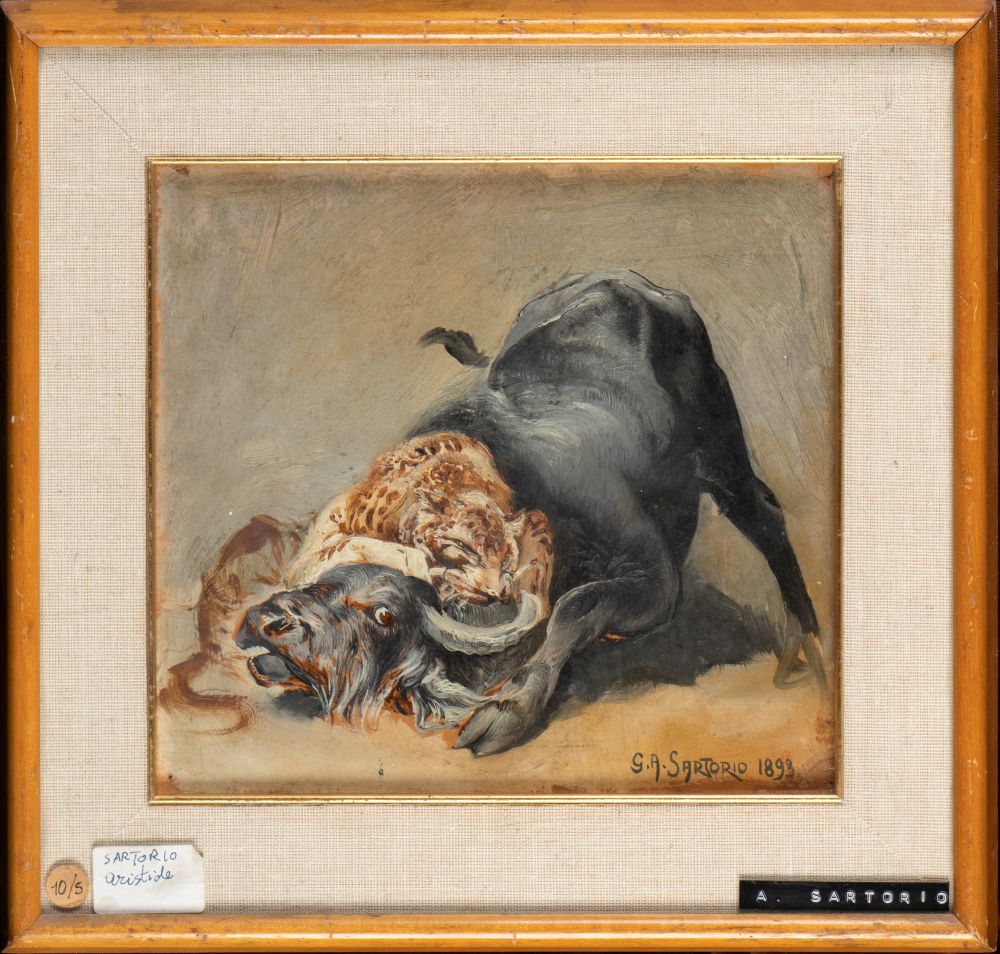 GIULIO ARISTIDE SARTORIO (ROMA 1860 - ROMA 1932) , Scena di predazione animale 1893
