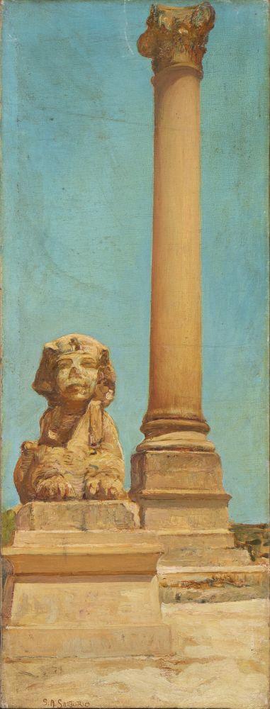 GIULIO ARISTIDE SARTORIO (ROMA 1860 - ROMA 1932) , Composizione con sfinge e colonna
