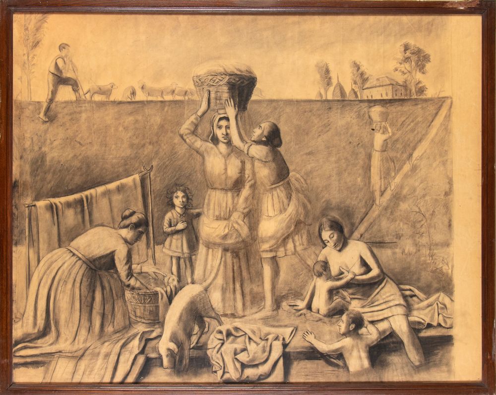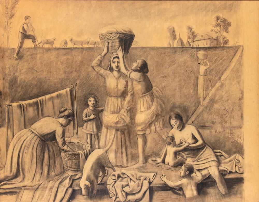 Firmato e datato in basso a destra: Ceracchini, 1931. Al retro presente un altro disegno raffigurante alcune lavandaie